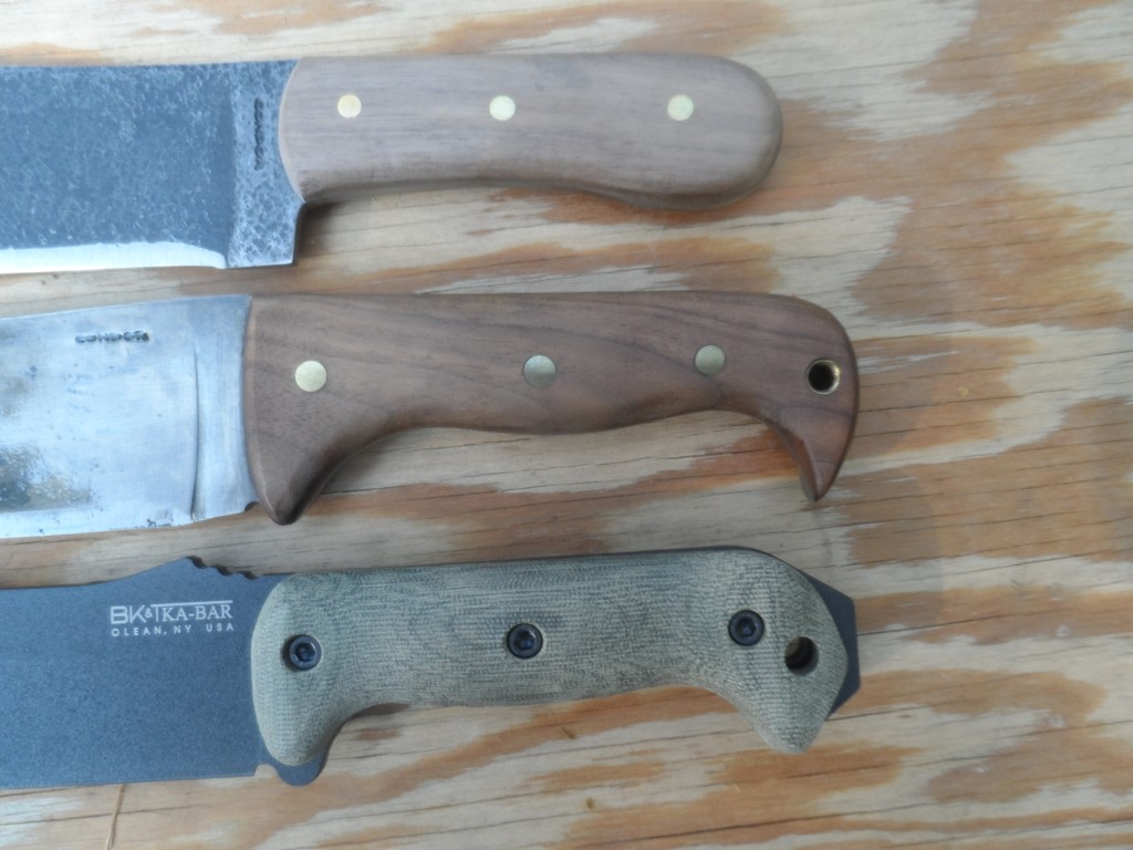 I have a Mora (11746) "ROBUST" companion mg (HEAVY DUTY) in Carbon Steel for many camp chores, but have wanted to get something bigger for batoning wood, minor chopping, etc. The problem is, the most "classic" big (6-7") blades I can think of are stuff like the the BK-7 and RAT-7 with those HUGE (and slick with the BK7) handles that make my hands hurt looking at them. Also, I'd prefer to spend less than $125-$140 UNLESS the knife was amazing.