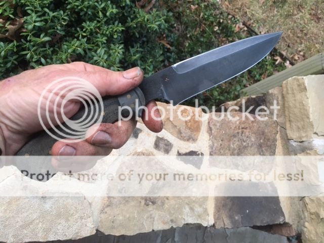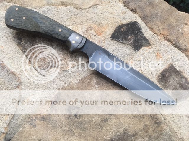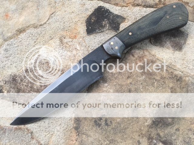 Black Micarta handle with a wrought iron bolster