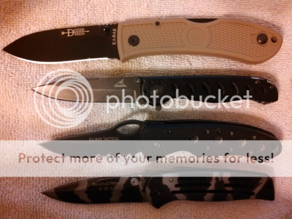 The wear on the Ka-Bar and the RAT-3 is from batoning, shouldn't be a problem with a folder.