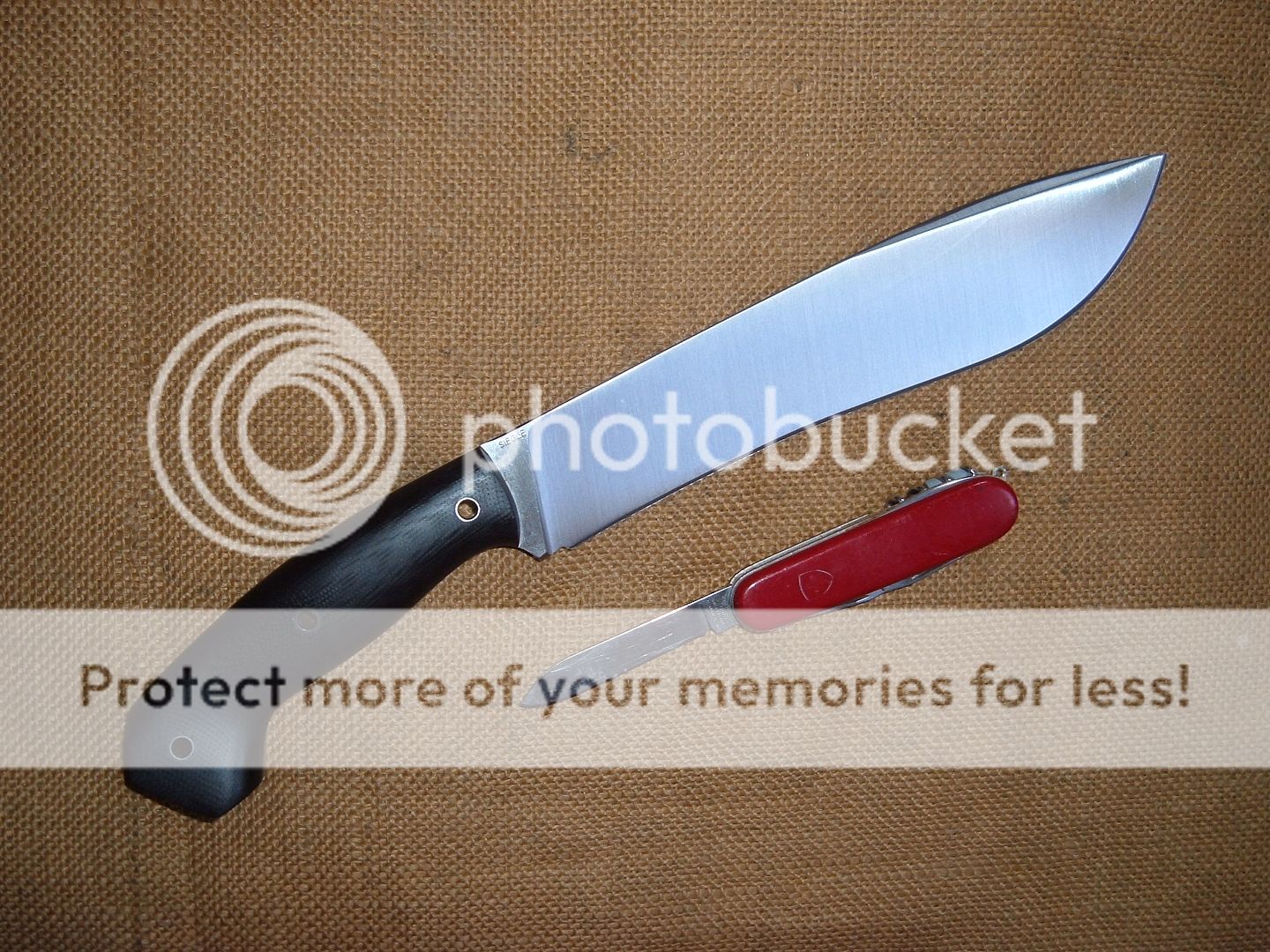 Black G10 scales over a 5160 blade with differential heat treat(hardening line won't show in my pics but it is there). Overall this is 14in long with an 8 7/8in blade tip to handle. Sheath is black Kydex with a large Tek Lok. I managed to get this one down to 17oz!!!