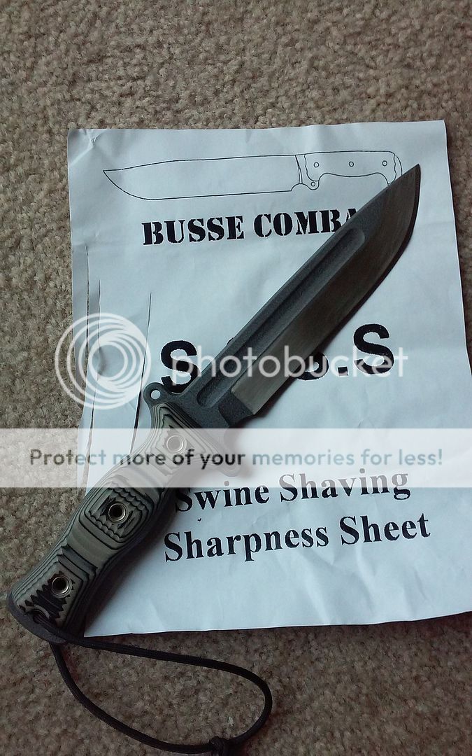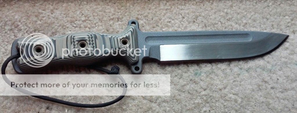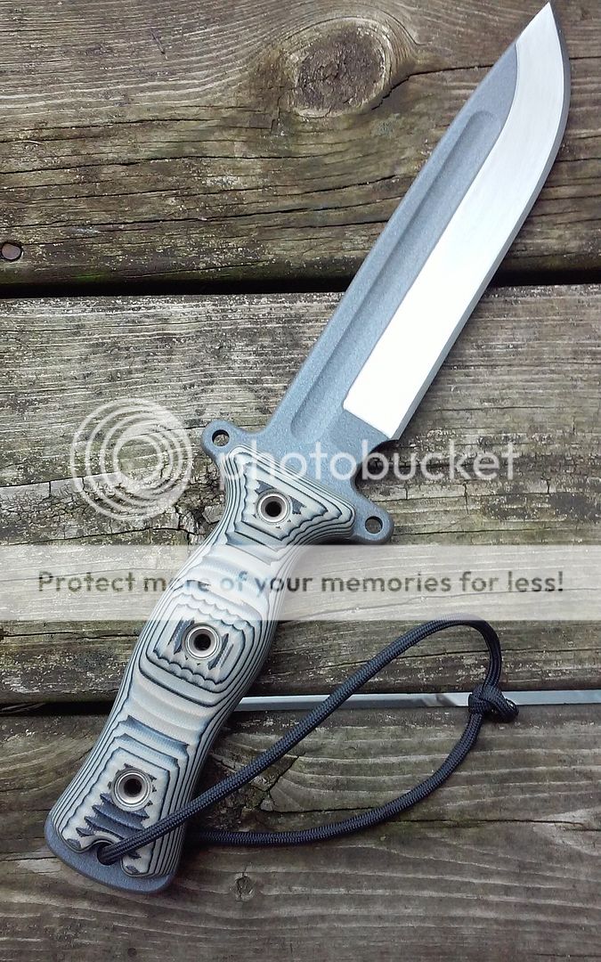 Black and tan G10. I thinned it out behind the edge which is really needed with the TGLB. It now chops and slices MUCH....MUCH better!!! I also spent a good week sanding the finish on the hollow grind, as that coating is so thick....it really holds it back from deep cuts or chops. So with the thinned down shoulders and the finished removed on the grind.....it performs 100% better.