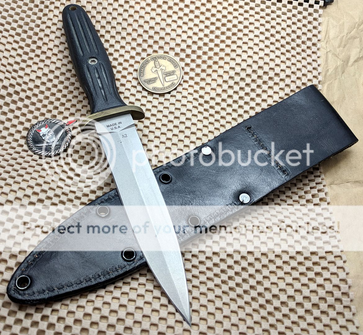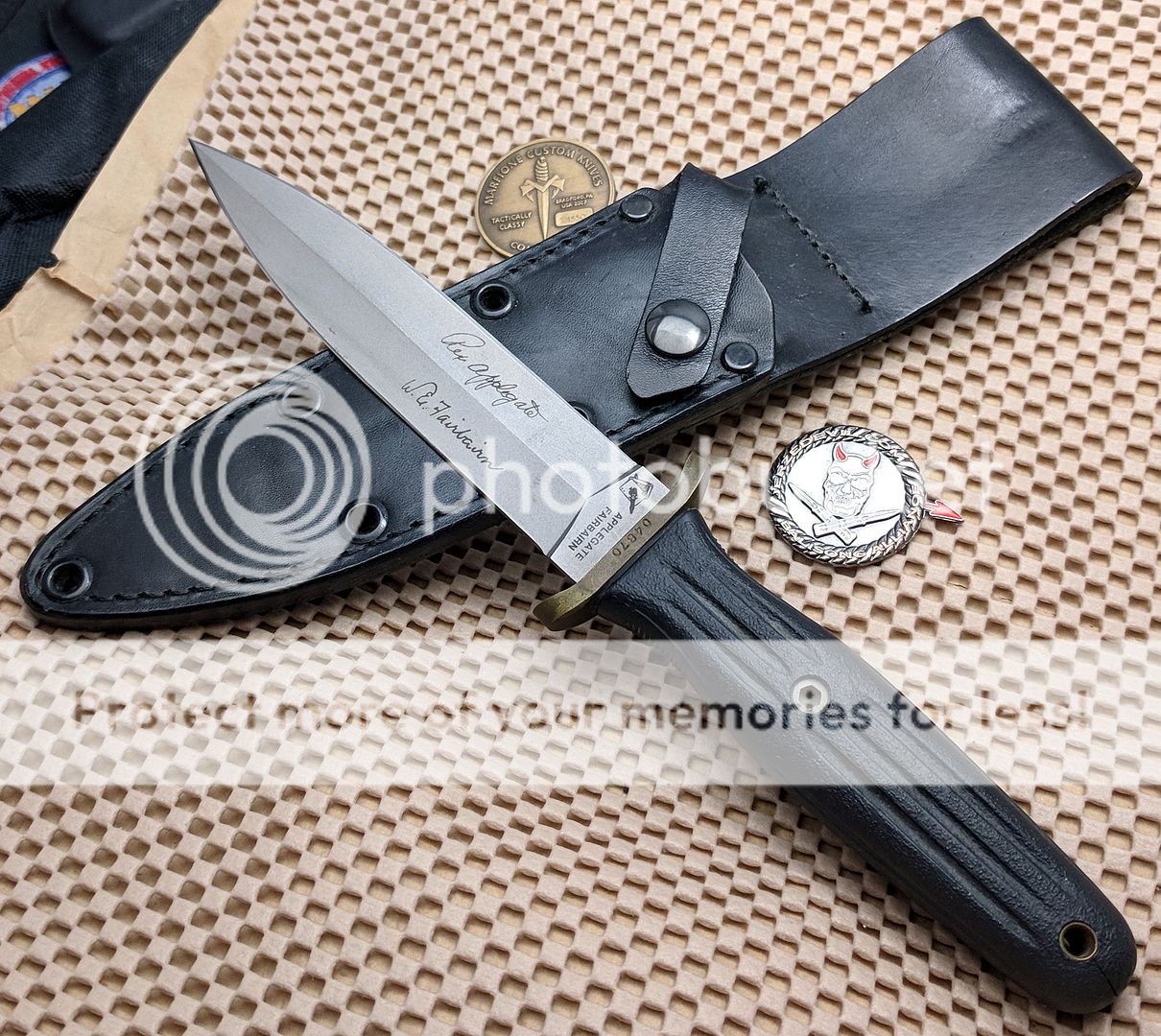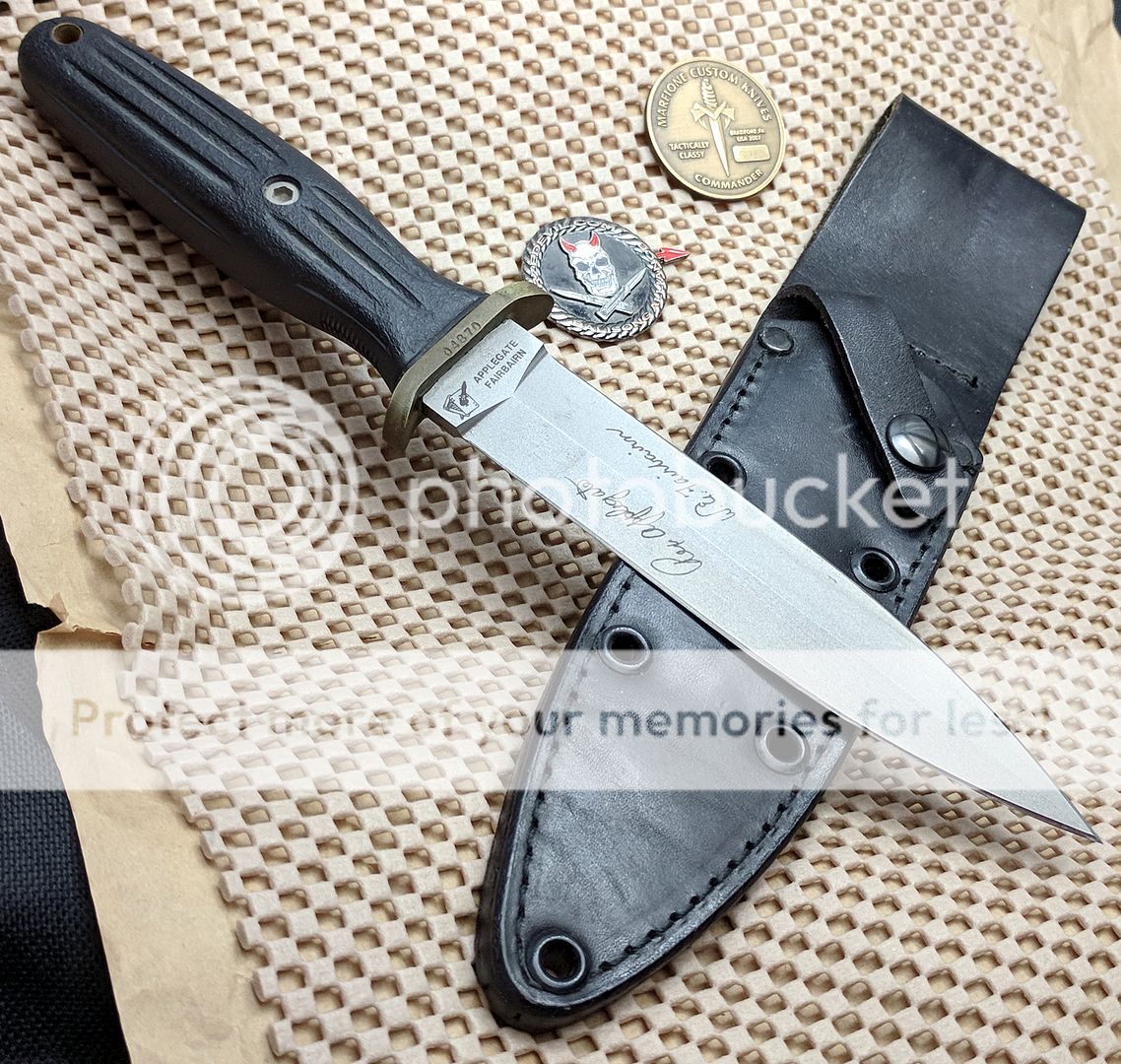 Apllegate Fairbairn Dagger as presented by Blackjack Cutlery made in the early 90's in Effingham, IL. Has the original sheath, no box.