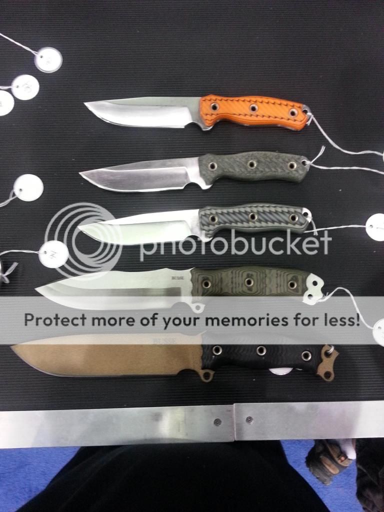 Not all busse obviously but it's the only pics I've taken.I scored one red and black g10 SOB and two rmjs(ones a proto)..also some buy brown JD necker sheaths. Took awhile for my girlfriend to convince him she was old enough haha.View attachment 446531