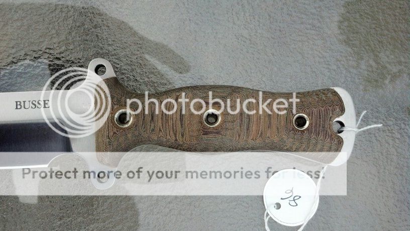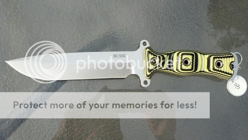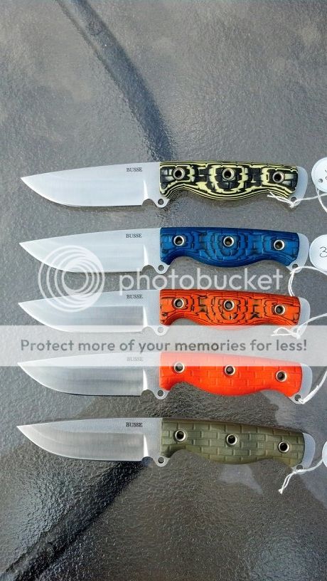 Busse Combat Son of Badger Competition finish with G10. blue/black, SOS orange, black/yellow, OD green, black/orange. One of each available $355