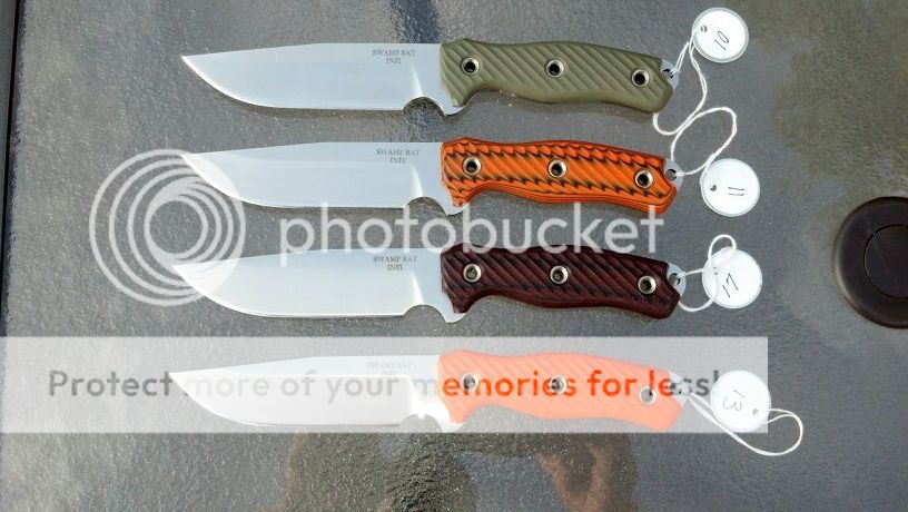 Swamp Rat Infi-du's with G10. black/orange, red/black, SOS orange. One of each available. $325 Sorry OD green is not for sale.
