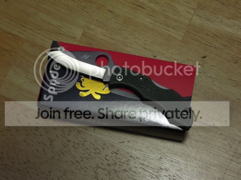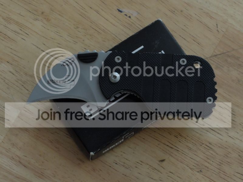 This has been EDCed quite a bit. It has mostly been used to cut cardboard and open mail. I have attempted to resharpen the blade but I find that the karambit blade style is a pain in the ass for me to sharpen. The knife had experienced some chipping from usage that I have done my best to remedy. The knife has been sharpened using both Lansky medium diamond and Lansky fine ceramic rods. Includes the original box it came in, with no additional packaging or accessories/paperwork.