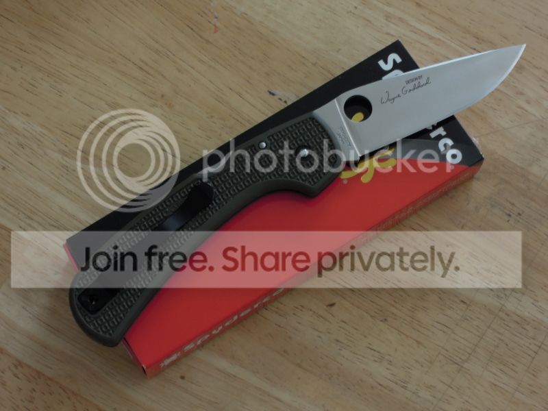 This knife has rarely been carried and has been used to occasionally peel some fruit and open some mail. There is no visible wear on the blade, there is no visible wear on the handle, and there is a minor spec of wear on the finish of the clip. The blade has only been touched up with a Lansky fine ceramic rod and has also been stropped on a 3 x 10 kangaroo leather strop with .25 micron diamond spray. Includes packaging and accessories / paperwork. The brown scales on this knife have been swapped in from a Delica4 FFG to replace the original British Racing Green scales that normally come on the ZDP-189 Spydercos. The packaging available is for the FFG Brown Delica4.