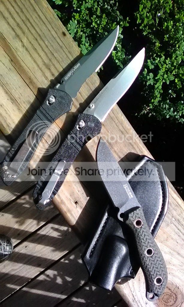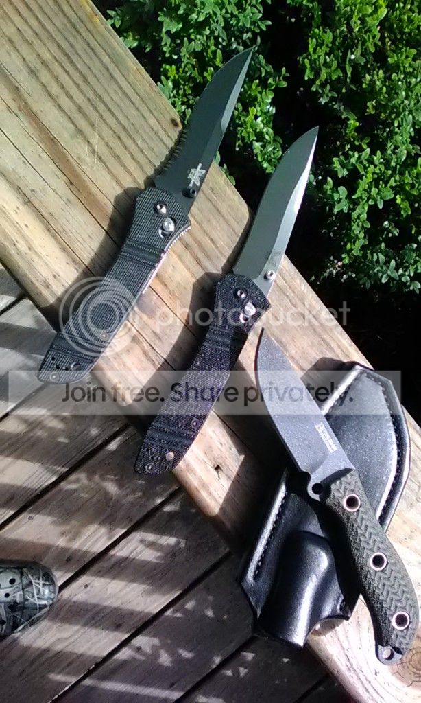 Busse BGAD: Battle Grade Active Duty. SR101 steel. Tanker gray blade coat/Black Micarta scales. New/unused. New, Pirtle leather sheath.Traded