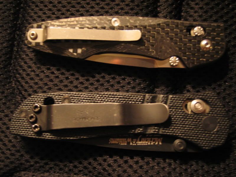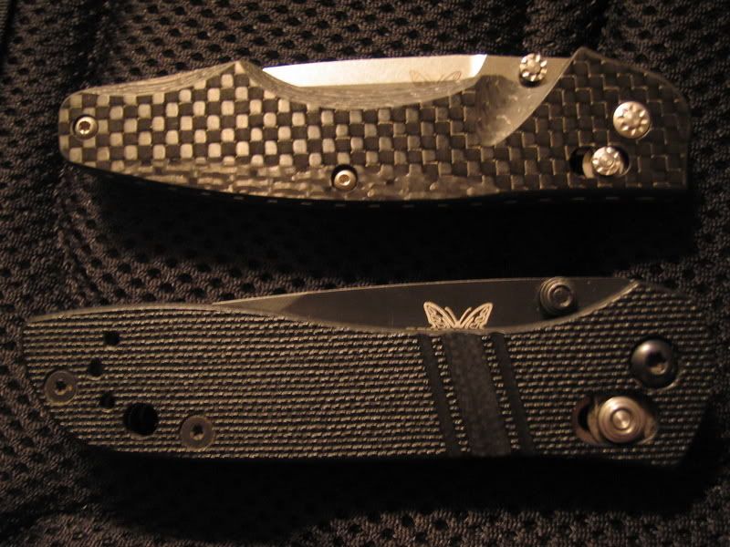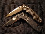 1. BM 770 w/ carbon fiber scales in 154cm. Knife has been sharpened, never carried though, and only used to open mail. In a couple of the photos it appears as though there are some vertical lines, these are in the blade grind itself and not from sharpening. I don't have the original box but it will be shipped in a BM box Price $SOLD