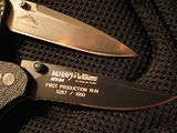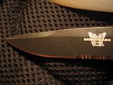2. BM 705SBT in Ats-34. If I'm not mistaken this knife was from the first production run in 1998 or 1999 (I'm sure someone can correct me if I'm wrong) it was carried in my edc rotation for a while but never cut anything other than cardboard, definitely not abused. It does have some scuffing and scratches on the blade and I think I highlighted them pretty well in the photos. I sent it out to BM about 6 months ago to have it sharpened so it does have a sharp factory edge. This one comes in the original box. Price $SOLD