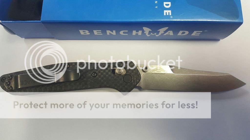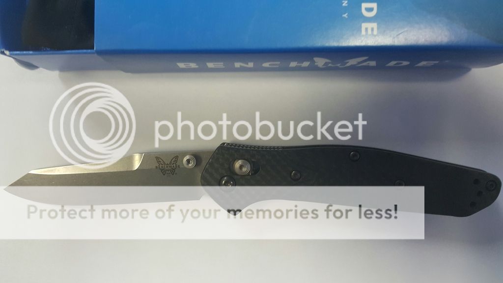 Up for sale is my Benchmade 940-1, cf/s90v, parkerized cip, LNIB condition. Centered, locks up tight, and falls closed under its own weight ("free dropper"). Box, pouch, and paperwork included. The action on this one is fantastic. Please see pics below.