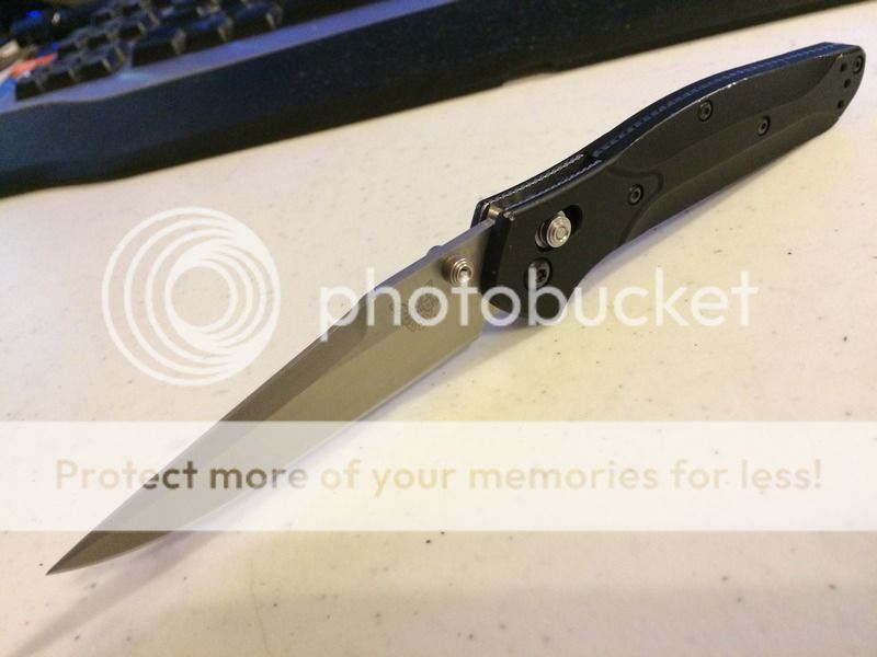 I had to do some maintenance to my 943 this evening. I bought it off ebay on the cheap and sent it back home to BM to have the blade replaced and it became my EDC blade for the next 4 months. Early on in that 4 month cycle, I had to cut a gasoline fuel line and the gas completely washed all the lube out of the knife. Also, I don't know if there was any thread locker on the pivot screw, but if there was, it was now all gone after the gas went through it. I gave it a good bath with some Purple Power degreaser and dish soap, blew it out with an air gun, let it set in the hot sun just to make sure all the water was out of it and relubed with BreakFree.