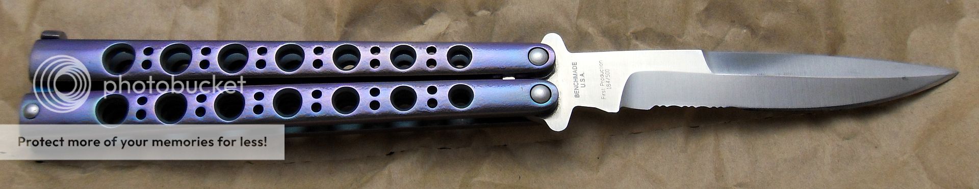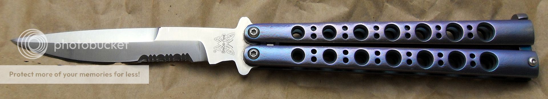 This is a rare Benchmade Model 40 TR, there weren’t a lot of these trainer balisongs made and as such, they’re pretty hard to come by. I picked this one up at Blade 2014.