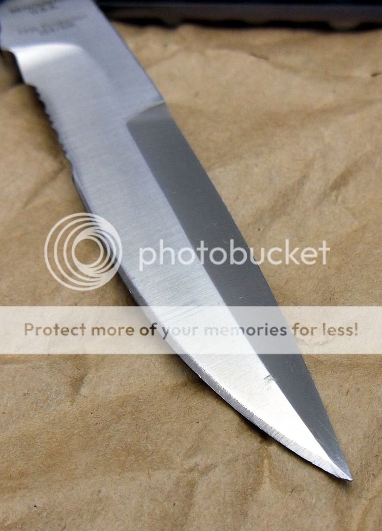 Condition Note : This knife is at approx. 80% condition. It had been sharpened; it has several scratches on the blade and a few chips in the coating on the handles.