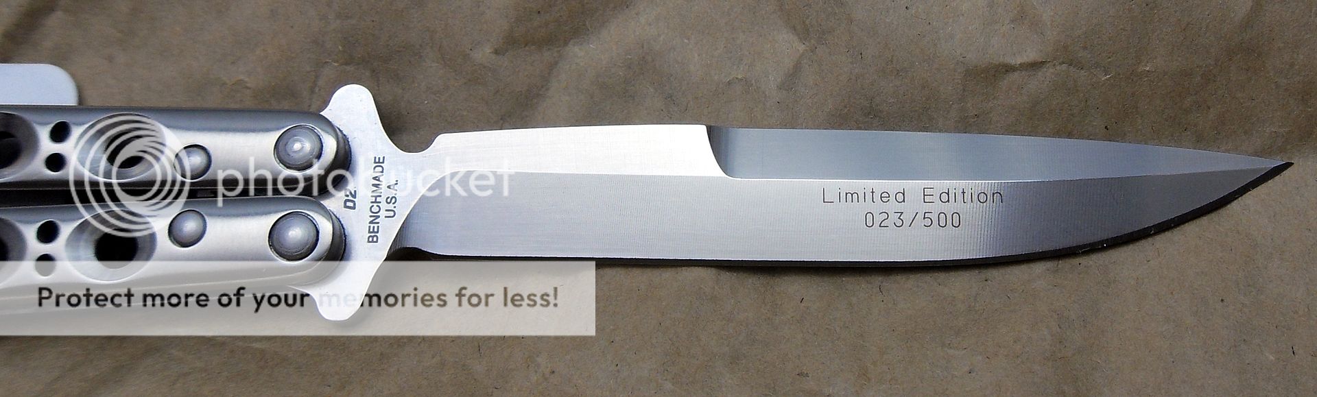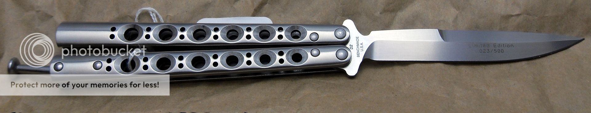 This is a rare BM 42 SS, which features Zin Pins, D2 Steel Blade, Stainless Steel Handles and is a limited edition. This knife is #023 / 500 pieces worldwide. This piece includes the original box, paperwork and sheath.