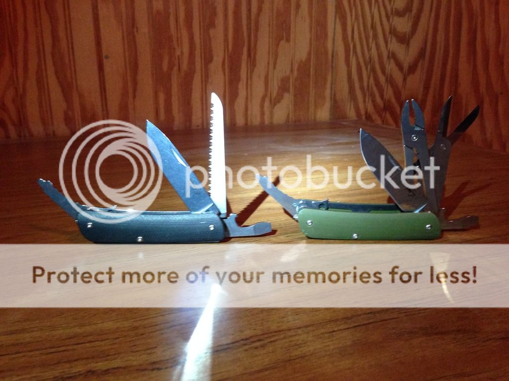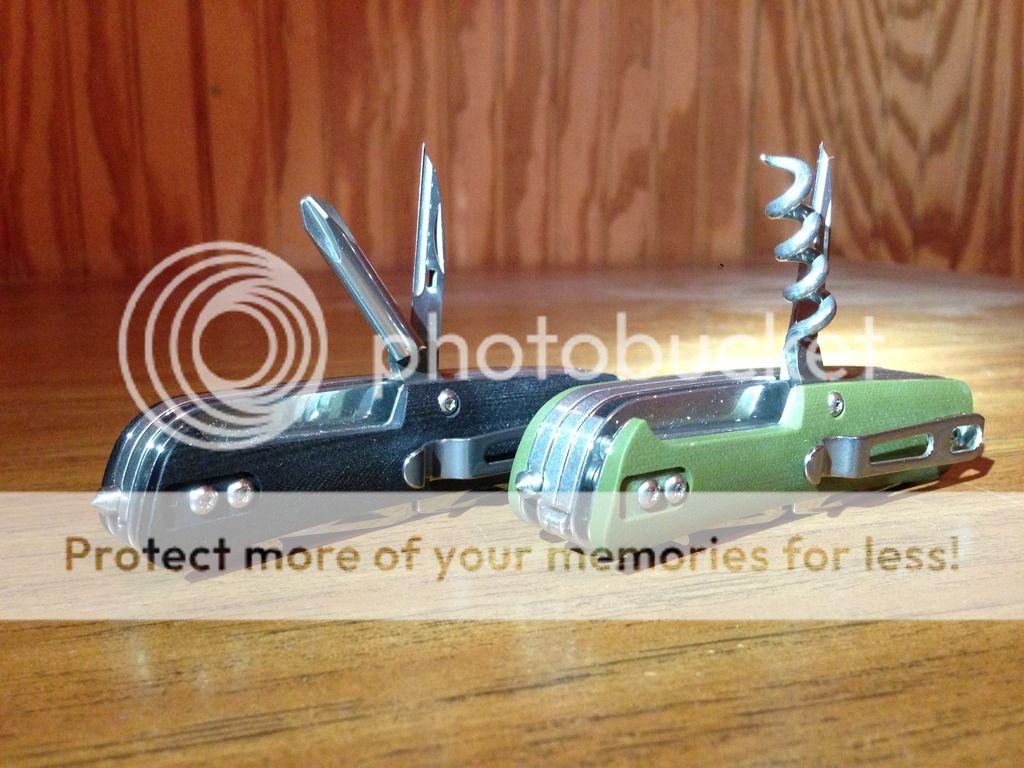 Last set are the Boker Plus Tech Tools. These have smooth G-10 handles, Sandvik 12C27 blade steel, glass breakers, and an assortment of SAK like tools. I paid an arm and a leg for these yours today for $28 each shipped via USPS Priority 2-3 day shipping with delivery confirmation.