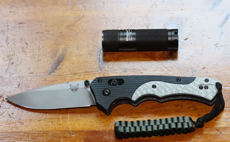 The winewood grips look really good on the all black knife and since the winewood has a red-brown-black color, it really matches. the fit of these grips was spot on and the fit/finish of the rest of the knife was also perfect. The only thing I had to do was to switch out the grips, and tighten up the pivot to my liking, and this one was ready for some pocket time. I did remove the pocket clip and apply some blue loctite to help take some of the wiggle out of it. This also is my only complaint, that BM needs to make this type clip out of thicker stock as that would help the flimsy feeling the clip has when opening the blade. I realize that part of that is because of the tighter pivot and that my hand puts more pressure on the clip when opening, but still......