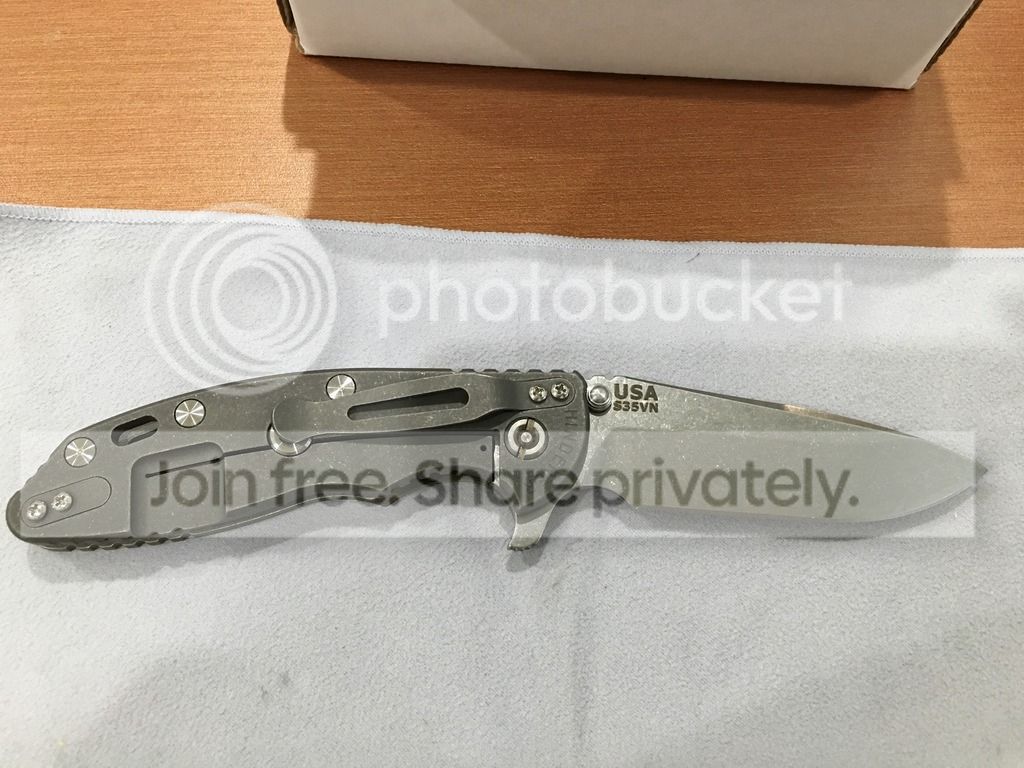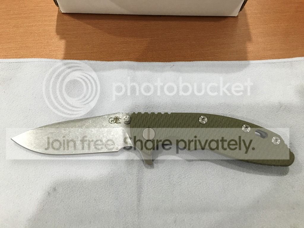 Brand new in box Rick Hinderer XM-18 3.5" spearpoint grind with dark working finish lock side and liner, stonewashed blade. Only took it out of box for pictures. OD green g-10 scale.