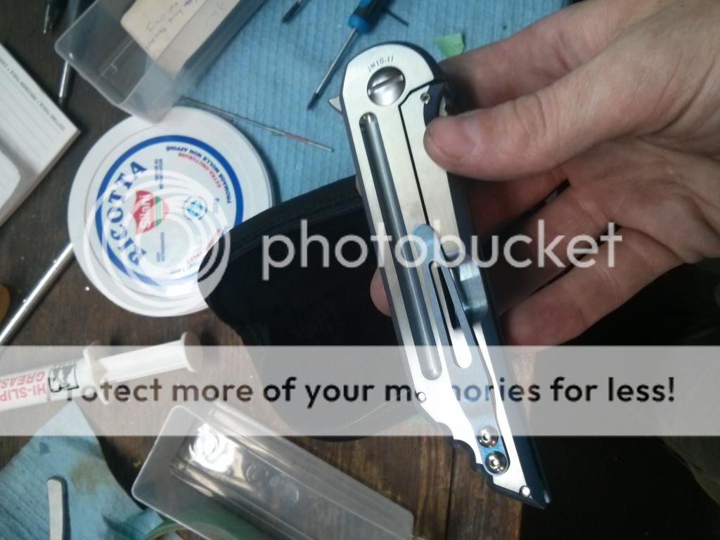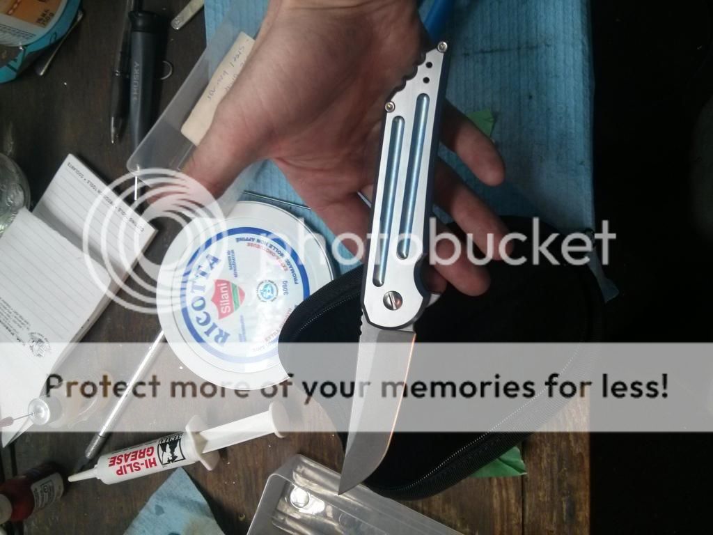 Well on my way back from weekend getaway and decided to let go of amazing knife. This knife is from the first run of the Midtechs done by Jake. Then I got Erik Grimsmo to do the impossible and go crazy customizing this knife. He blue anodized the handles and do a hand rubbed polished flats on the Ti. Then he polished all the spine of the actual blade. After the cosmetical changes he tuned the HRD and complete mechanical action on the knife. It is pretty close to Norseman smoothness. It is truly a one off piece combining the true engineering of Hoback and the crazy anodizing and polishing skills of Grimsmo. Truly the combo of some of the best skills in the industry.