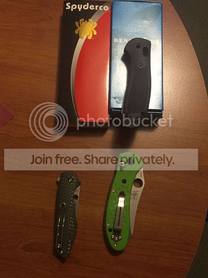 Also up for sale is a nearly new, unused by me Benchmade with cuscadi(?) scales, along with a brand new set of factory scales. I'm not calling this new because I bought it here maybe a year or so ago, but I've never used it and it's been a safe queen the entire time I've had it.