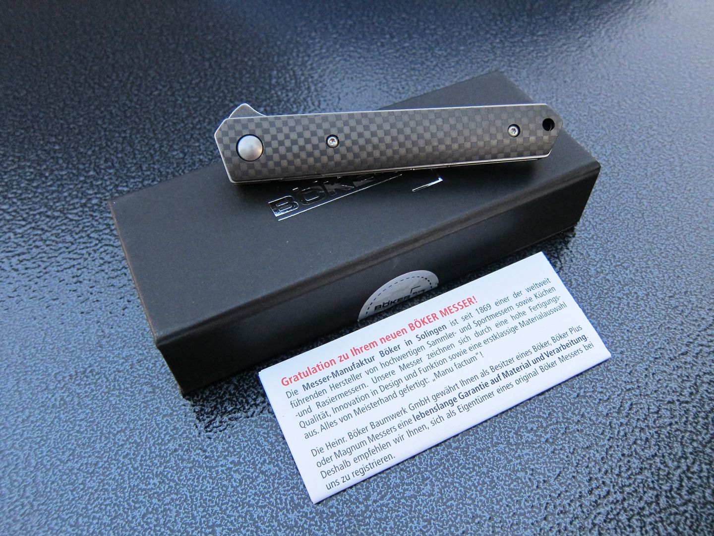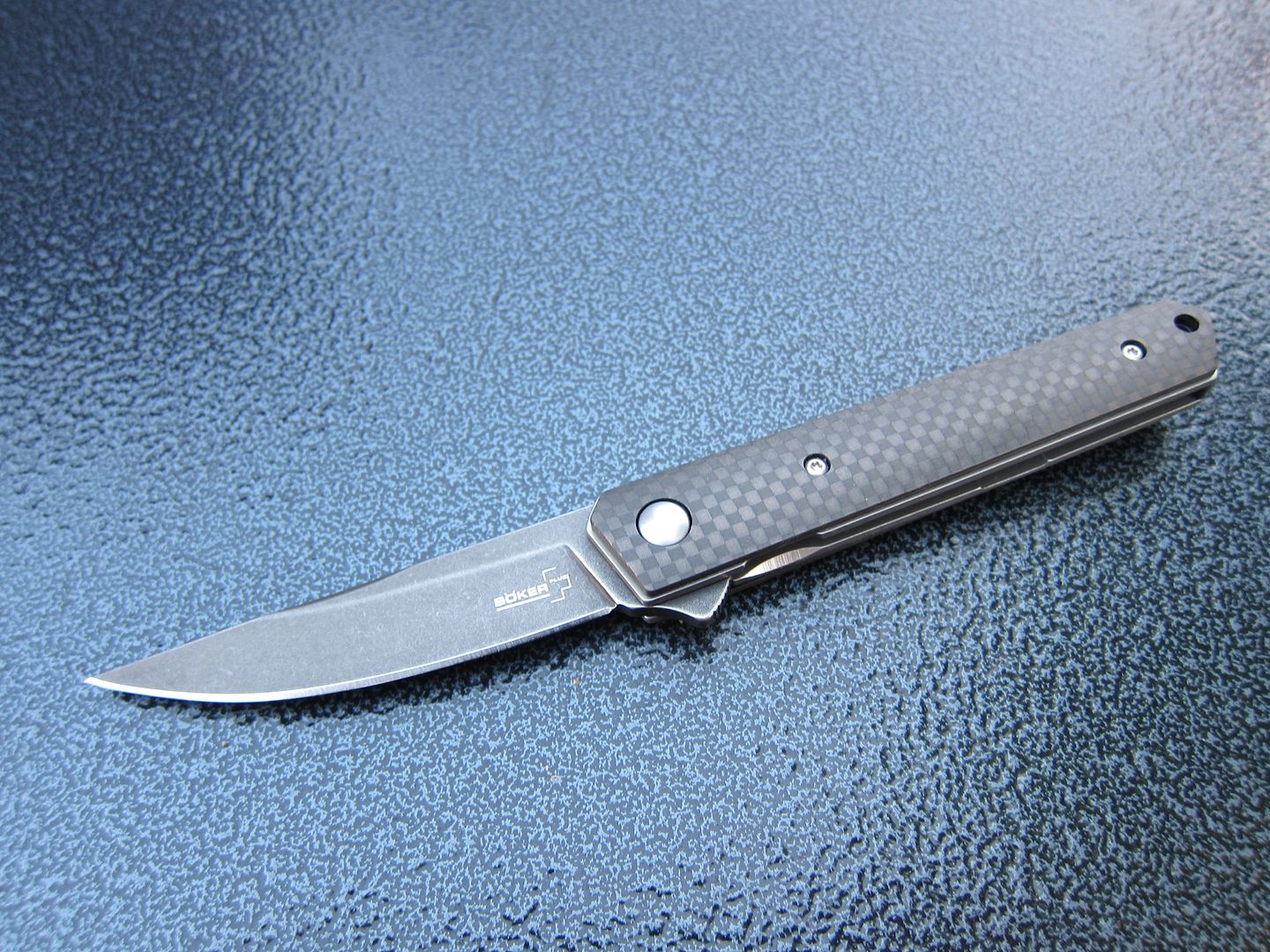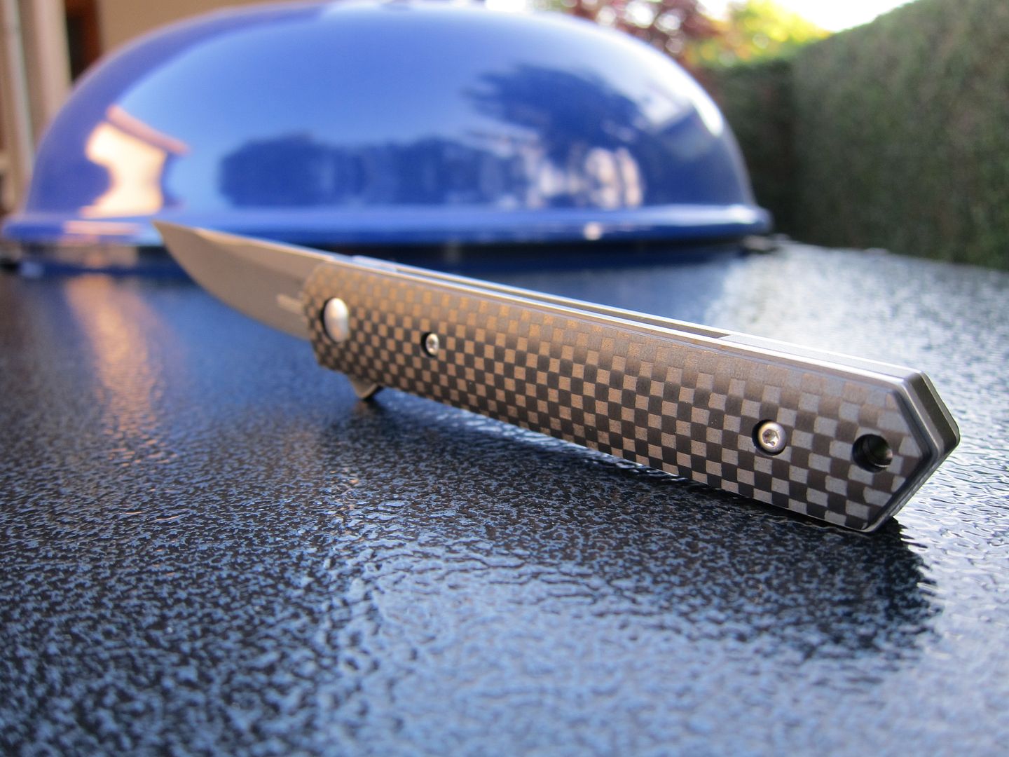 Selling an excellent condition Boker Mini-Kwaiken BladeHQ Limited Edition with Carbon Fiber Scales and smoke wash blade finish. The IKBS Bearing are amazingly smooth. Blade is centered, never been sharpened and ZERO blade play. Please excuse any lint from my microfiber towel in the pictures.