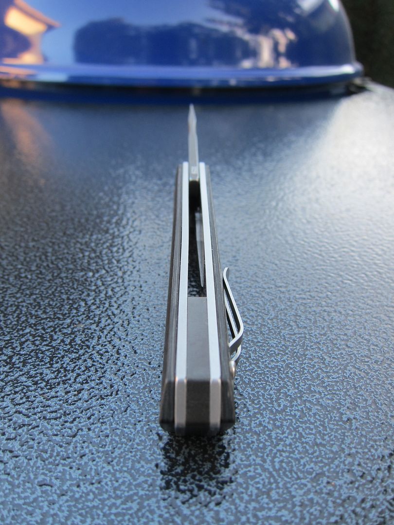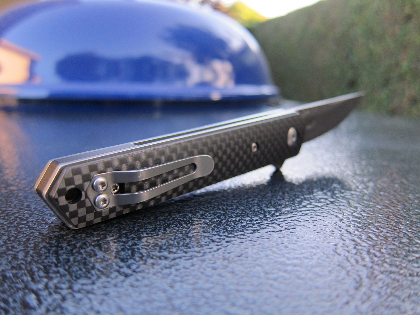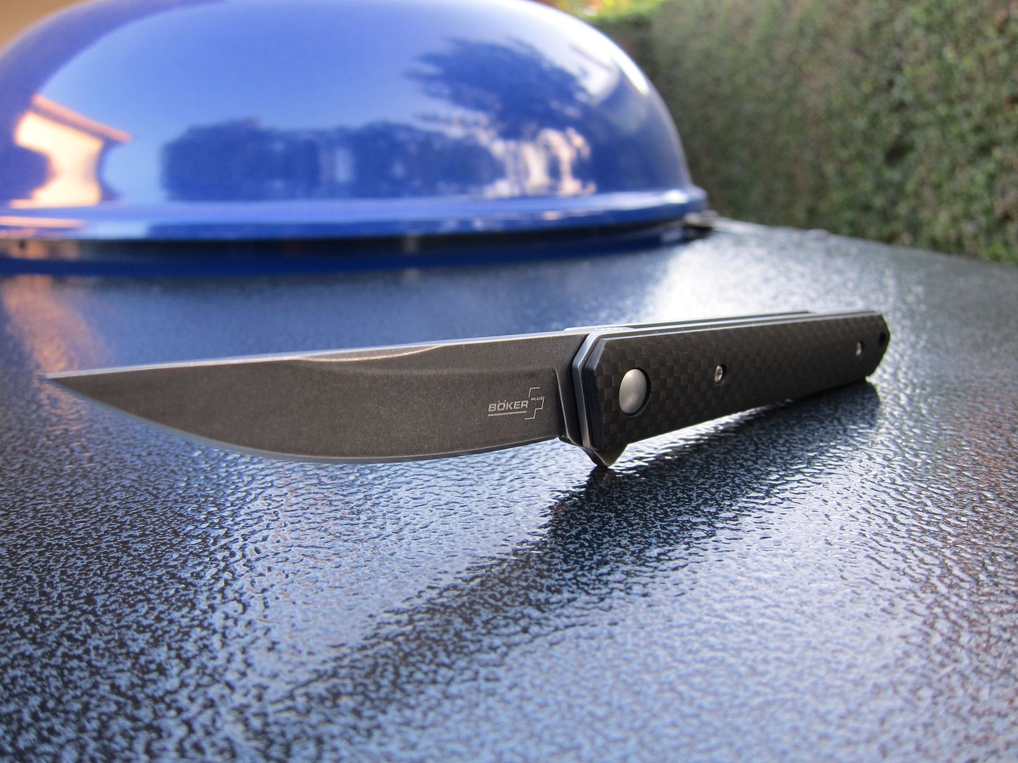 Selling an excellent condition Boker Mini-Kwaiken BladeHQ Limited Edition with Carbon Fiber Scales and smoke wash blade finish. The IKBS Bearing are amazingly smooth. Blade is centered, never been sharpened and ZERO blade play. Please excuse any lint from my microfiber towel in the pictures.