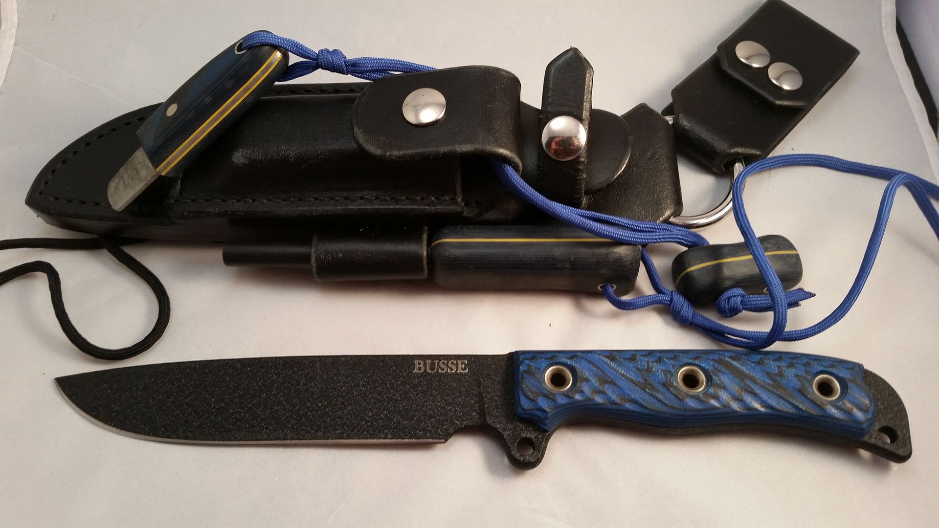 Very lightly used Boss Jack. Coating on blade is still 99% just a very light scuff on the edge from cutting a small branch. Comes with chuddy bear drop leg sheath, and custom fire striker. There are two light scuffs on the sheath, that with shoe polish would vanish. For the sake of making many of sales threads today, I am just posting one picture. I will take more for serious buyers. $SOLD TYD Paypal Goods.