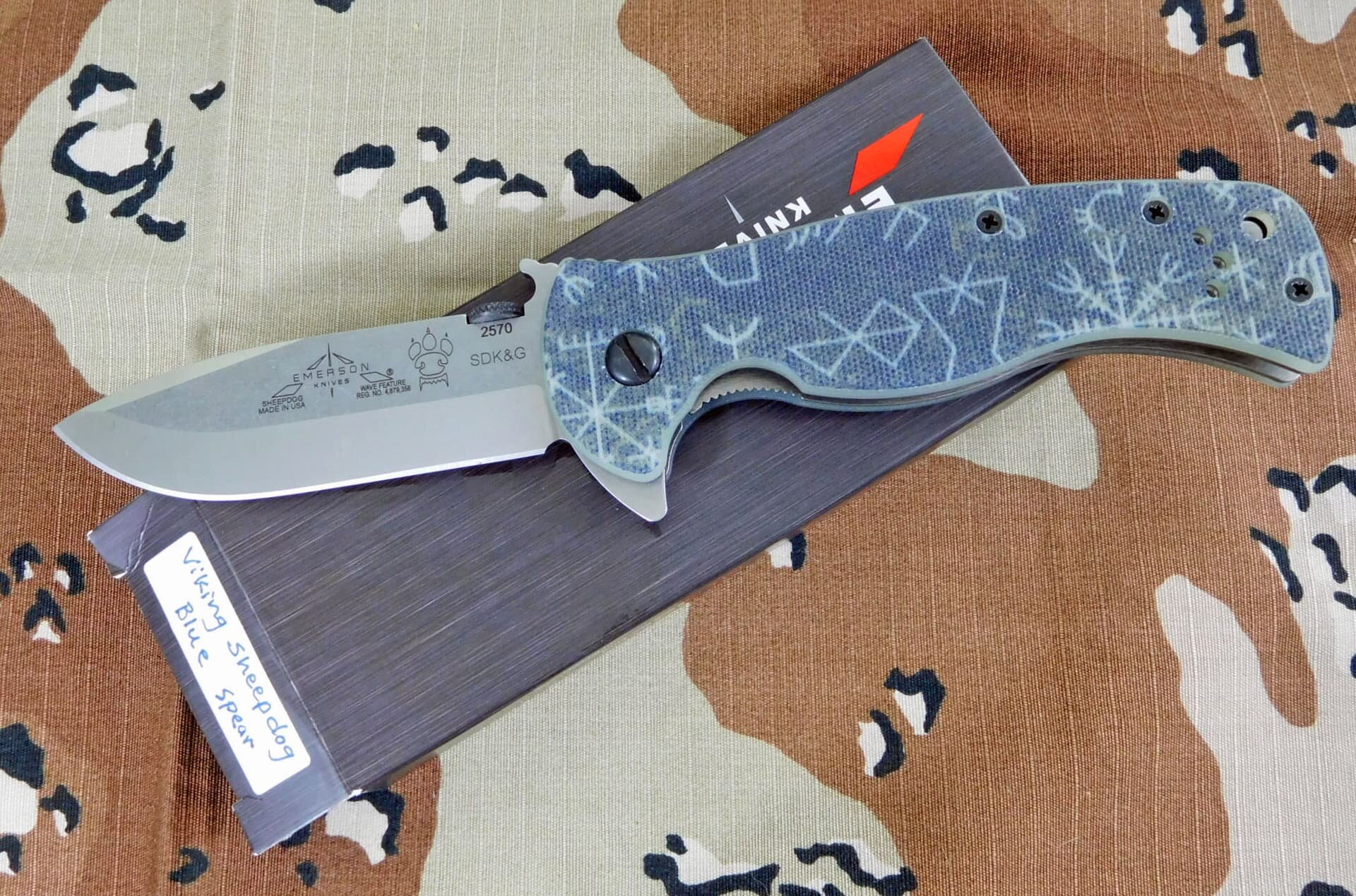 Viking Sheepdog flipper with blue scales with Viking runes. This was from the final day of the “12 Days of Christmas” drop in 2022. Never used or carried, flipped a few times, well centered, good lockup with no stick. $Sold