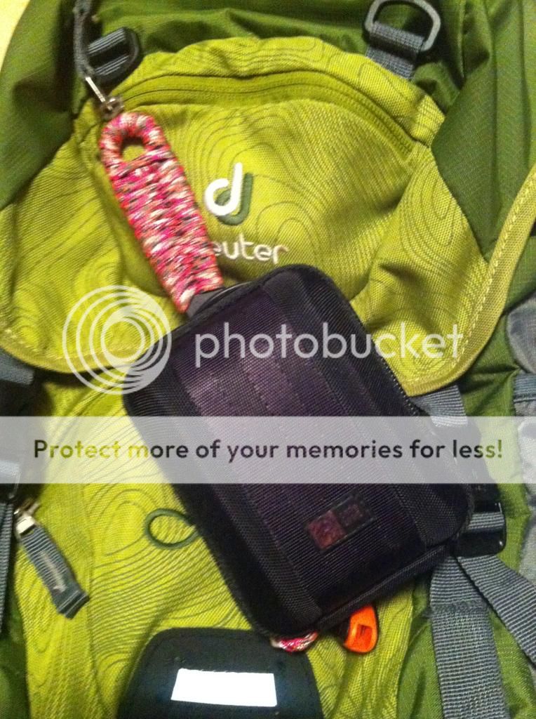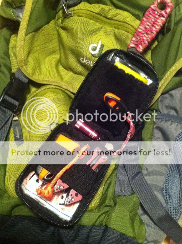 Did manage to put together a small PSK for her the night before as well, out of an old camera case that she could strap to her knife. Now she has one just like her dad's. Not much in it; whistle, flashlight, sparkie firestarter and tinder, multitool, emerg. blanket, and her boo boo kit. Told her the whistle would be her most important tool if she got lost; just sit under the biggest tree in the area and wail on it, and i'd find her. seemed to make her much more confident hiking in the woods.
