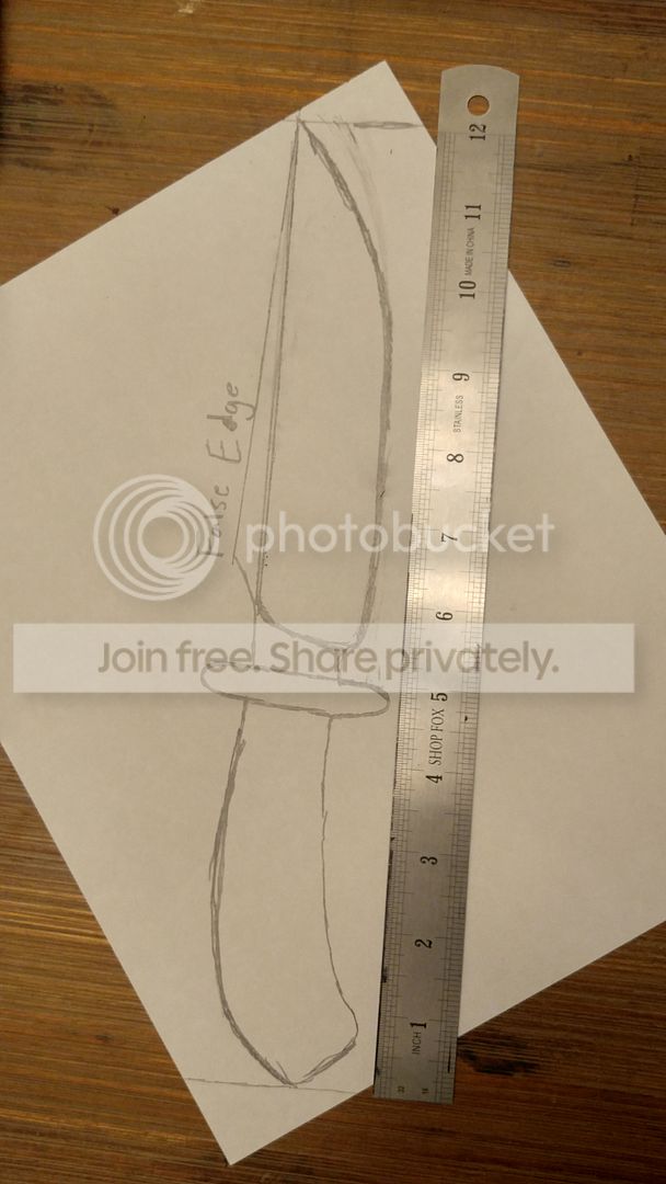 After a year of carrying a fixed blade, it's time to have a custom built to my needs. 12" overall seems to be my sweet spot... The largest I EDC is a TGLB. But sticking to 12", I drew something up for a BF maker (AVigil) to execute in 1/4" CPM 10V hardened to 62RC.