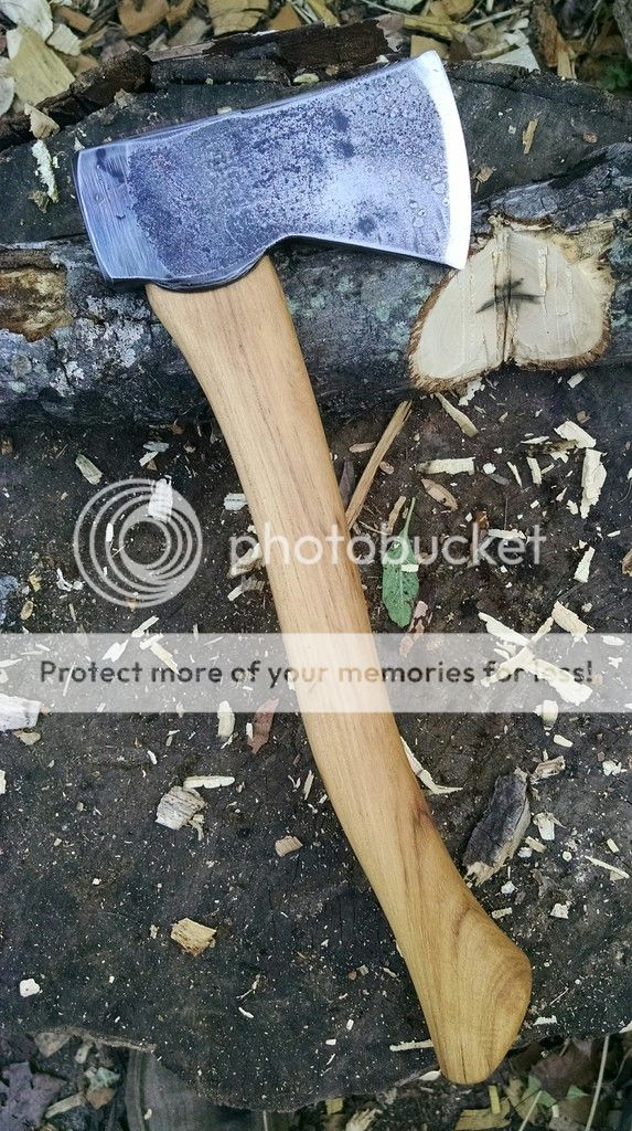 I thinned down (mostly just took off the lacquer) the original a handle a bit and rehung my revitalized hatchet head. I got a super tight wedge.