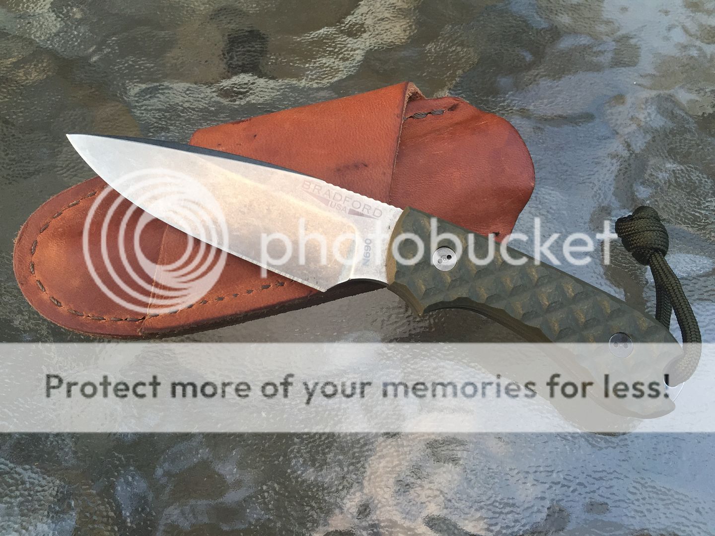 Bradford Guardian 3- OD Green, stonewashed N690, brand new never used with leather sheath and original box.