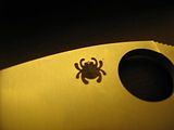 Looking at my Gayle Bradley, it looks like it's engraved in a tri direction. Like, an expanding triangle. I don't think that it's inlaid with CF, and it's just how it's engraved. Possibly faster?