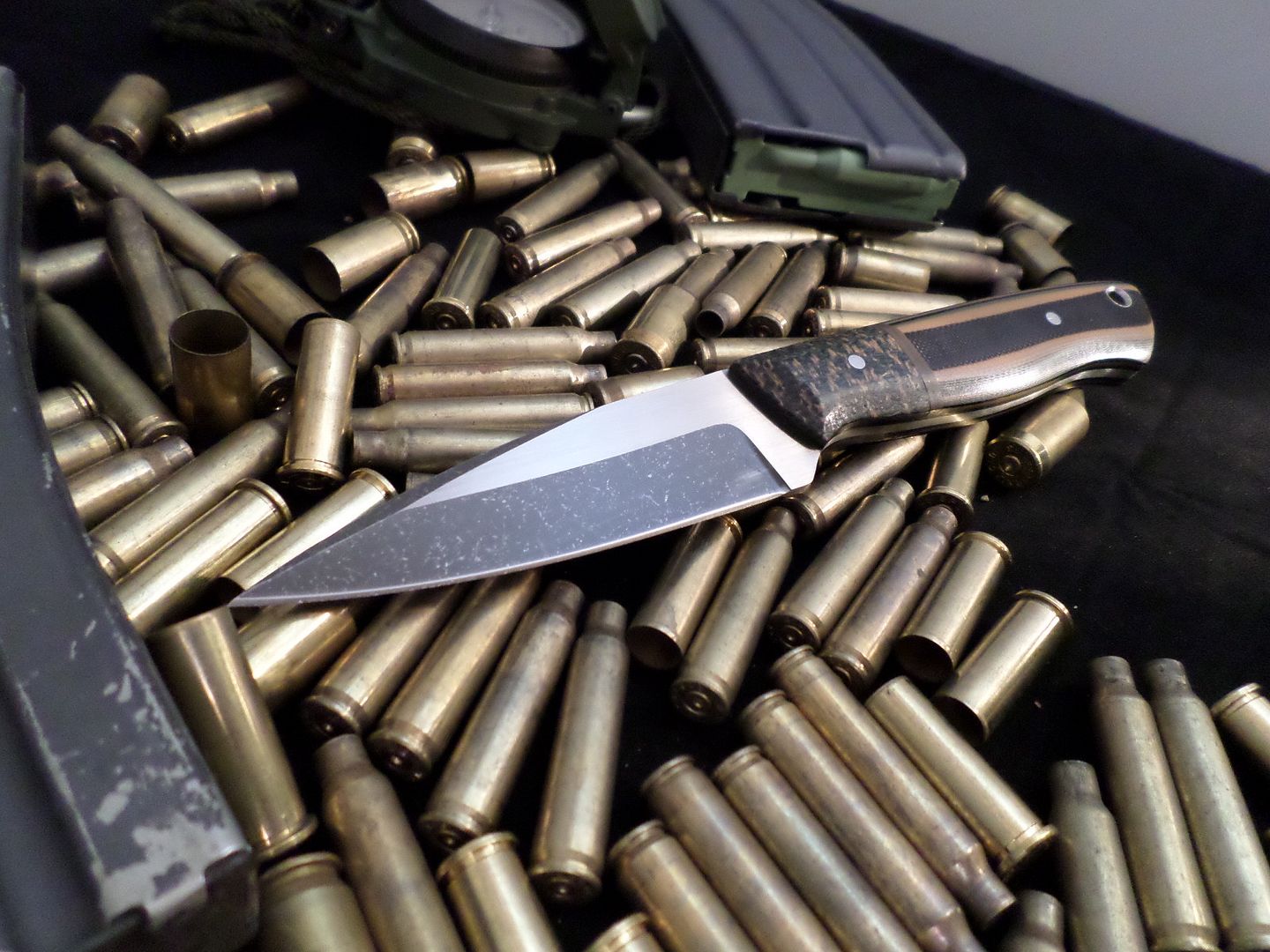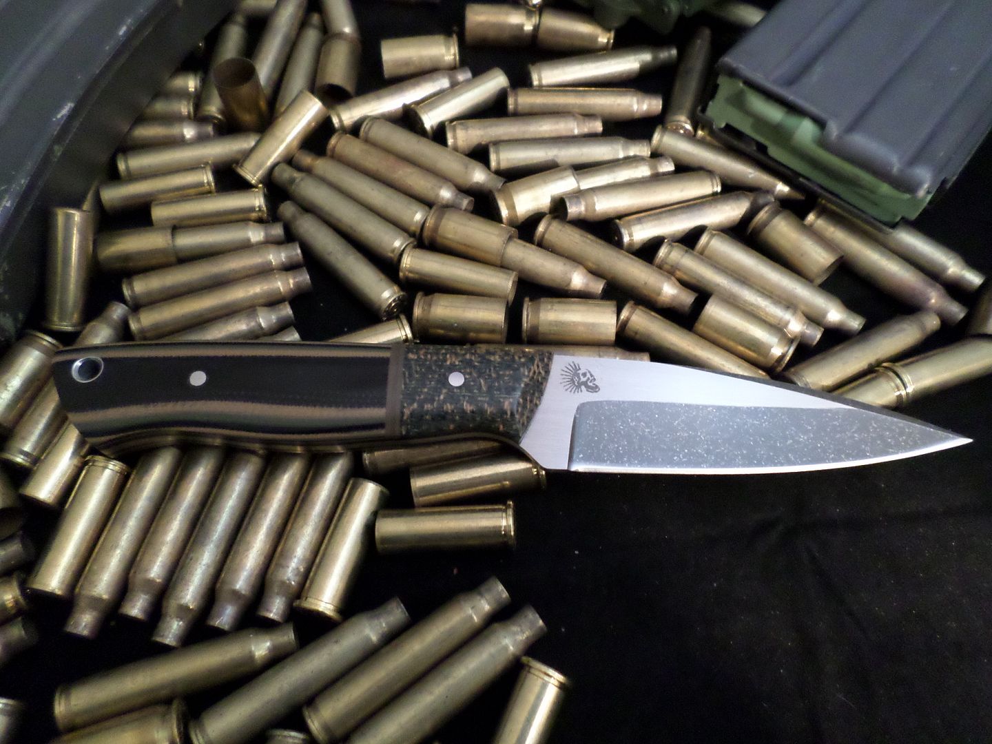 HANDLE SCALES- CAMO LAYERED G10 WITH EARTH BROWN AND OD SPACERS SEPARATING SHADETREE HERRINGBONE MICARTA BOLSTERS!