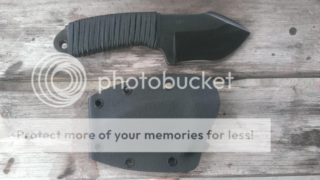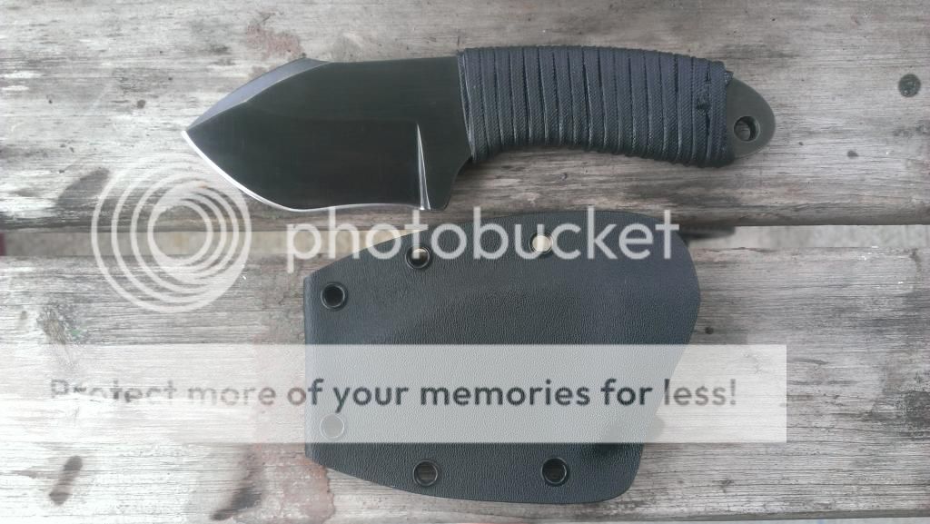 This knife has never been used/carried/sharpened. The steel is 1095 I think, and is 1/4 inch thick. It is a stout little edc sized knife. The kydex sheath was also made by Casey Bradshaw.