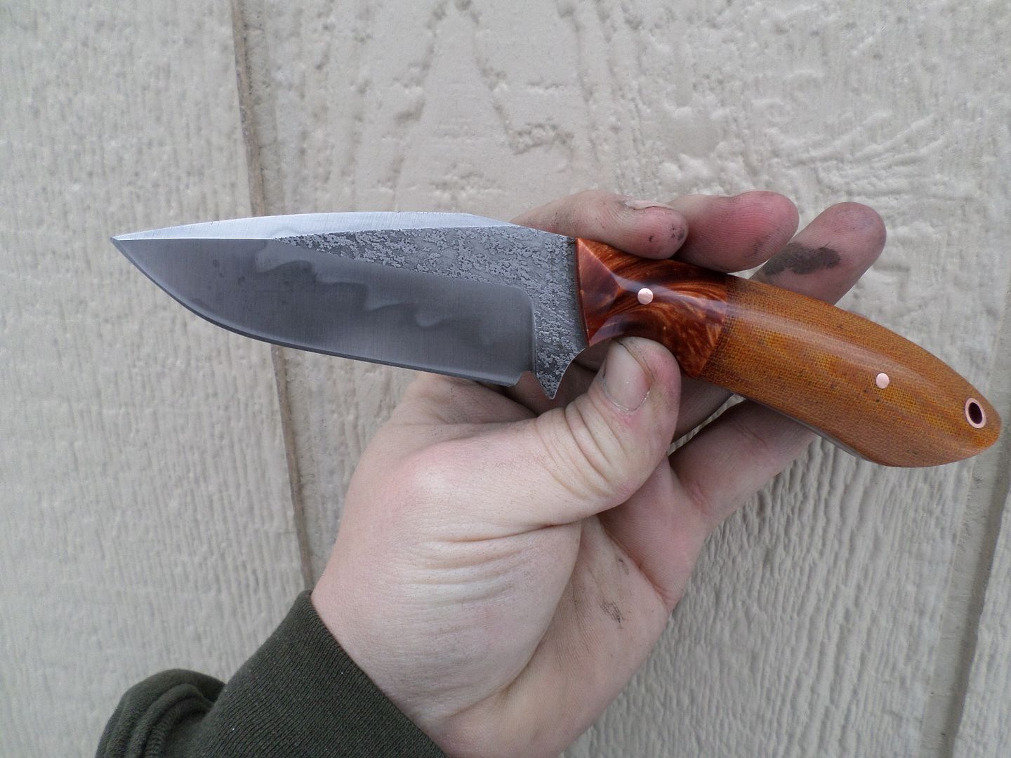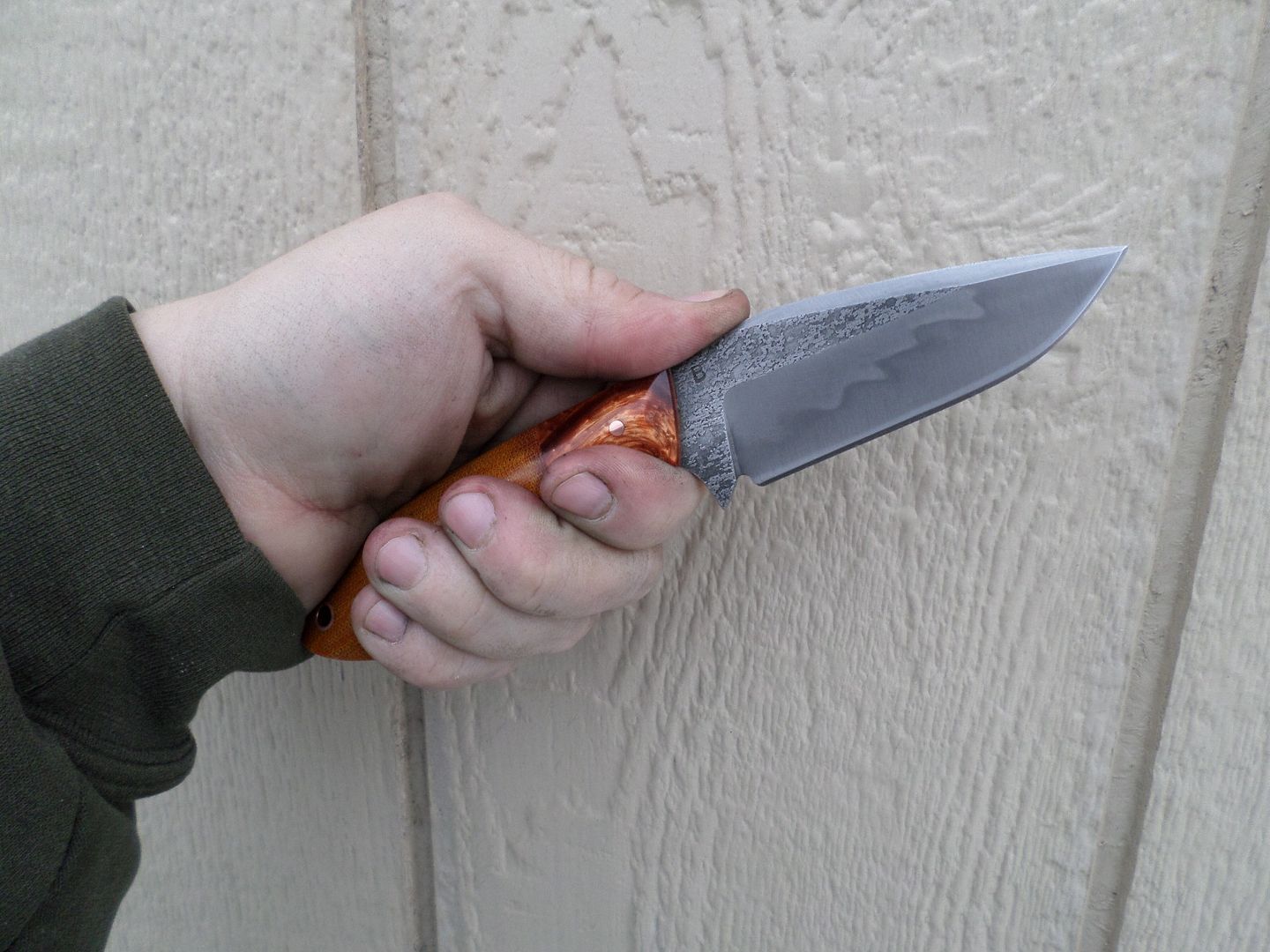 WHATS UP GUYS?!! GOT A NICE FLAMING HUNTER FOR YA TONIGHT HOLLOW GROUND AND SHARPER THAN SH*T WITH A SMALL FLAME HAMON!