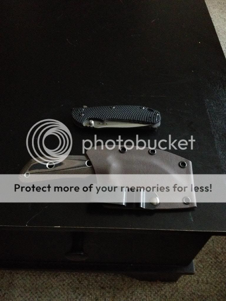 I just acquired this a couple months ago. Never used. Carried a couple times. Its super beefy. Brown and back G10 handle. 1095 blade and Kydex pocket sheath. See pics. I'm looking for SOLD firm. Only interested in a Superhawk or possibly a Civilian in trade. Thanks. First "I'll take it" followed by email or PM.