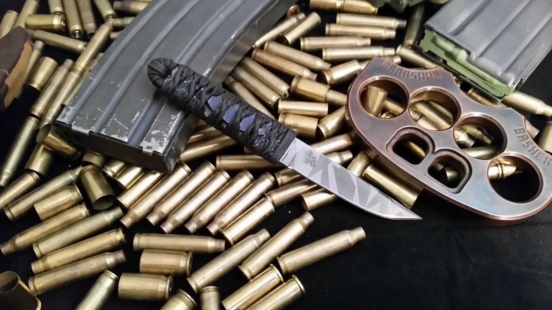 WELL HERES A NICE KWAIKEN FOR YA! NICE HAND MADE MENUKI FLAMED BLUE AND PURPLE ALSO IT IS COMPOUND GROUND WITH A PENETRATOR TIP! NEW FINISH AS WELL THAT IM CALLING URBAN CAMO! DIG IT!!BLADE STEEL: AEBL
