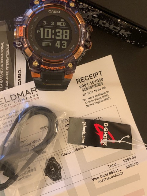 Brand new Casio G-Shock GBDH1000-1A4 with all the boxes, papers, tags, charger, etc. Yes, this the latest version of one of the latest models. It was purchased from an US AD on 2/2/21; was taken out of box just for the pictures. Everything else is still wrapped up. Here are some quick pictures: