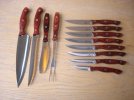 BEAUTIFUL BRAND NEW rosewood kitchen knife set 13 piece including wood block--took it out of box to take pictures...465.oo tyd paypal family and friends 495 regular paypal..1st "I will take it" followed by message gets it....I actually have 3 sets available---would be a perfect Christmas gift---no waiting will ship right away......slydog7@comcast.net...