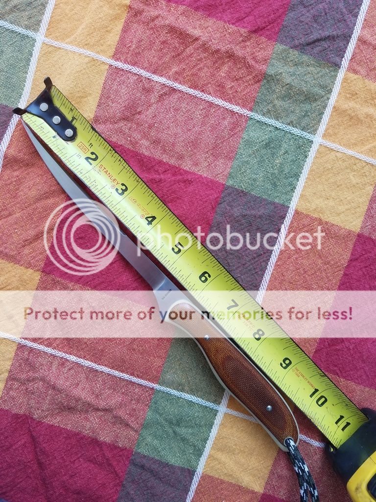10.5" OAL.... 154CPM... 60Rc....tapered tang .... vintage natural canvas micarta over ivory linen. SOLD 200$ shipped in conus. with choice of leather or black kydex sheath.