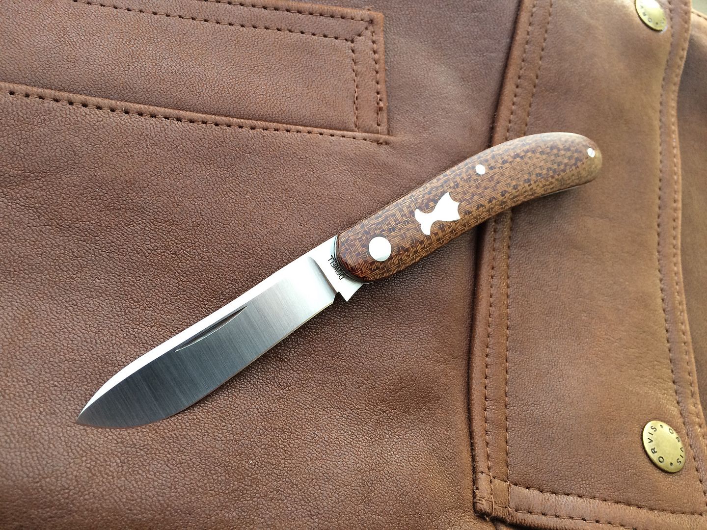 Blade and spring are A2, everything else is stainless. Scales are Royal Walnut from a block I’ve had for a few years.