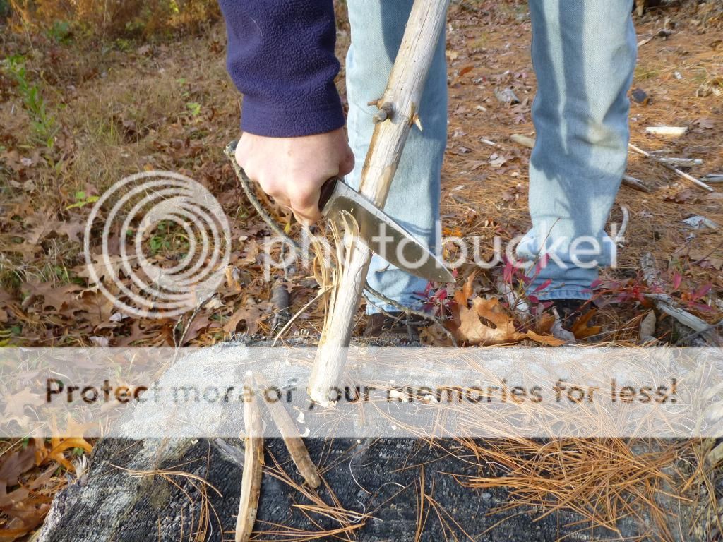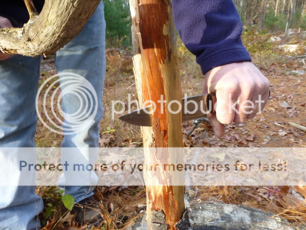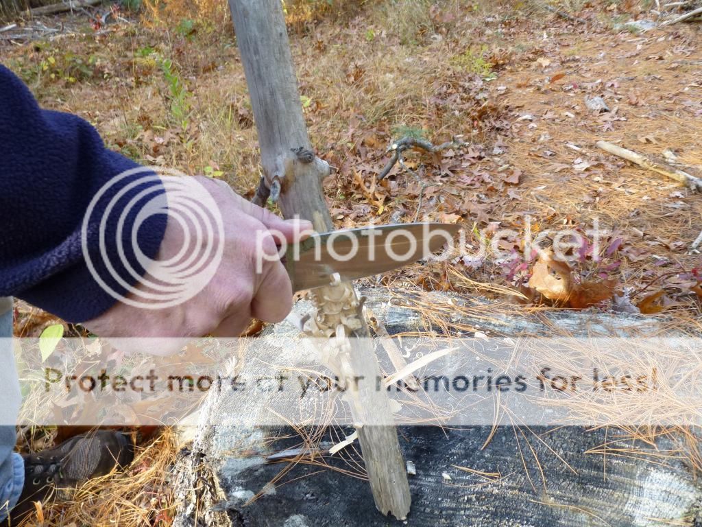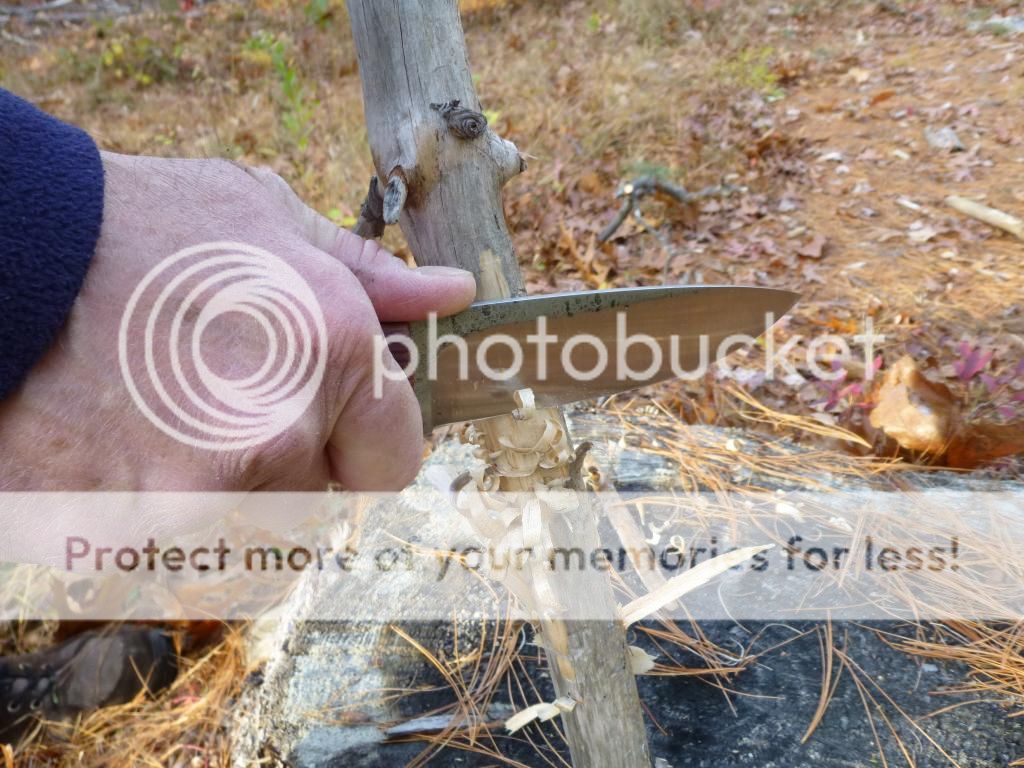 First let me say that Andy's knives are useable works of art, both pleasing to the eye, and very useful tools. Despite the beauty of Fiddleback Forge's knives, they are tools and my son and I use them as such-no safe queens here! I've used this knife camping and the more I use it, the more it becomes my favorite woods knife. I find that it becomes part of your hand, bites cleanly and deeply into any wood being worked, and it also slices meats and veggies like a scalpel. The O1 tool steel takes and holds a scary sharp edge, and the 5 1/2 inch blade length is enough to baton and process fist sized sections of wood while still being nimble enough in the hand for more exacting tasks. I made some large feather type wood shavings, a feather stick, cut a couple of different types of notches, and whittled a point for a tent peg. The light was failing fast but here are a few photos we managed to get in while the natural light was still with us.