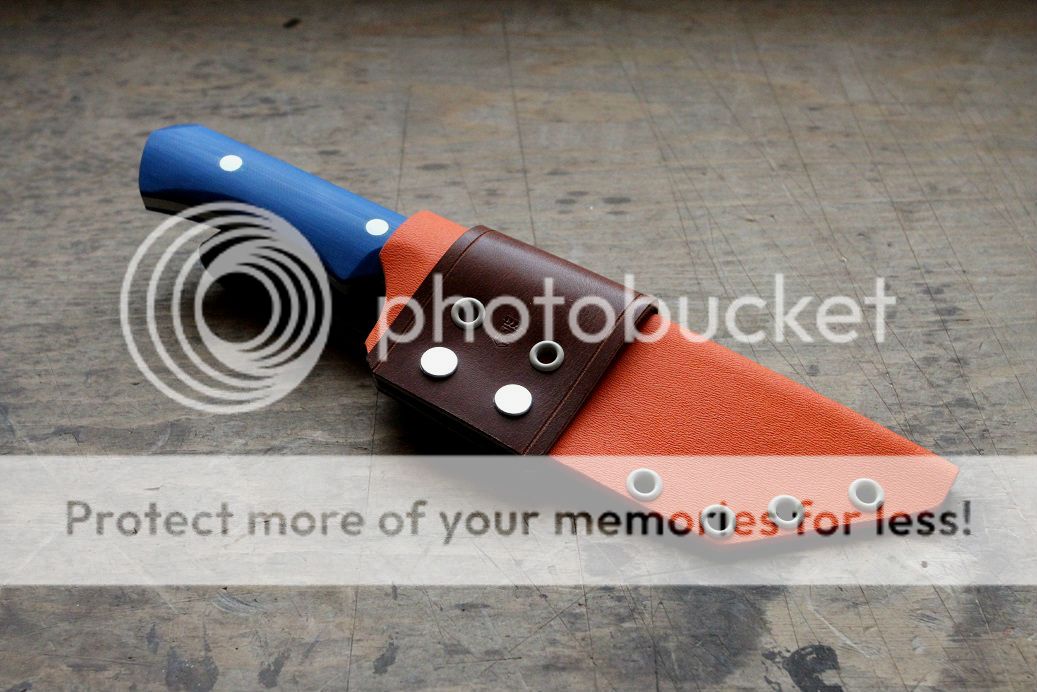 orange kydex sheath with brown cow hide