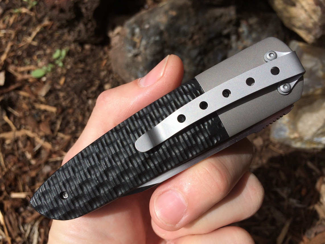 No marks on Ti, and only the slightest spot and short line on the blade that shows up in weird light/angles is present. Otherwise knife is nearly brand new in condition and function. Never used or carried by myself.