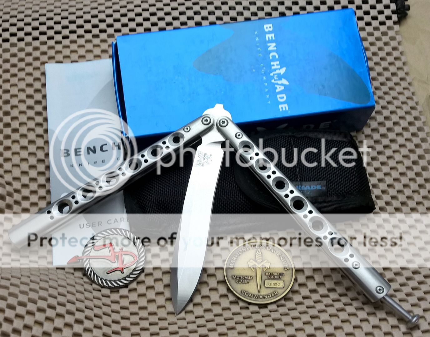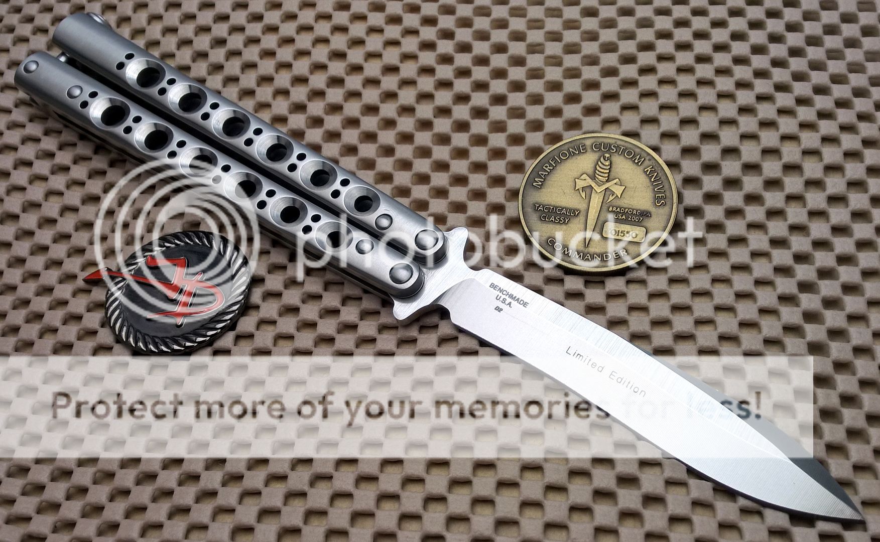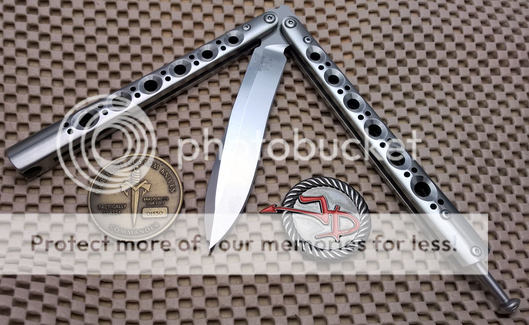 This is a RARE BM 41 S.S. Limited Edition Balisong. This is a non numbered knife and as such I'm not sure how many Limited Editions were produced in total but the knife has been discontinued for a LONG time. This is an excellent knife that features some design options there are worth noting that separates it from the majority of the rest of the 4X series of Benchmades. Initially, it features Zen pins as well as a 'upgrade' D2 Blade. It's also Stainless Steel Channel handles, vs. that of the Titanium handles that the majority of the BM 4X series of balisongs had.