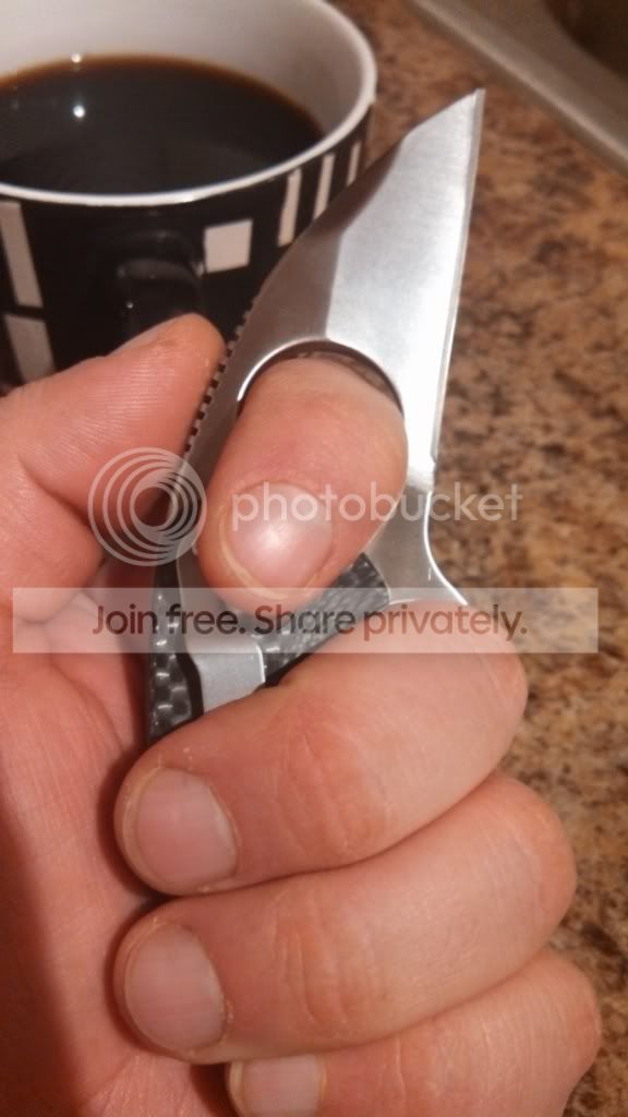 Evening and good weekend to all. Up for trade is a fair condition Brous Blades Silent Soldier flipper. Blade, scales, hardware, clip, and centering in great condition. Liner...well that's another story. Late lock up and some pretty wicked up and down blade play are very noticeable on this model. Pics, my perspective, and silver lining to come.