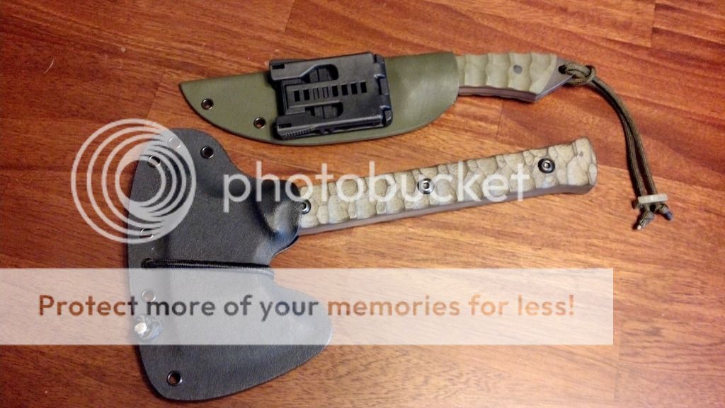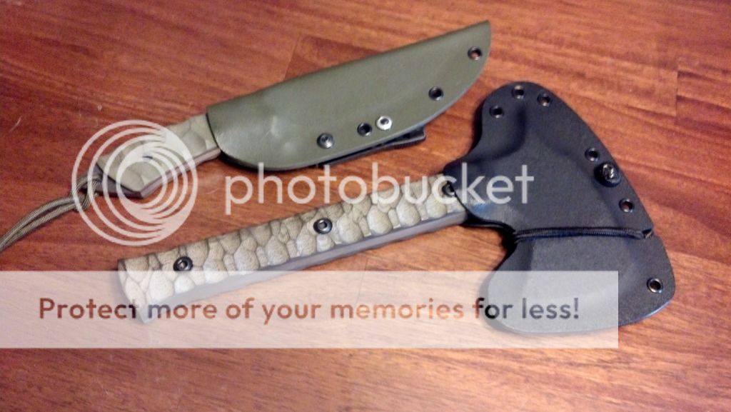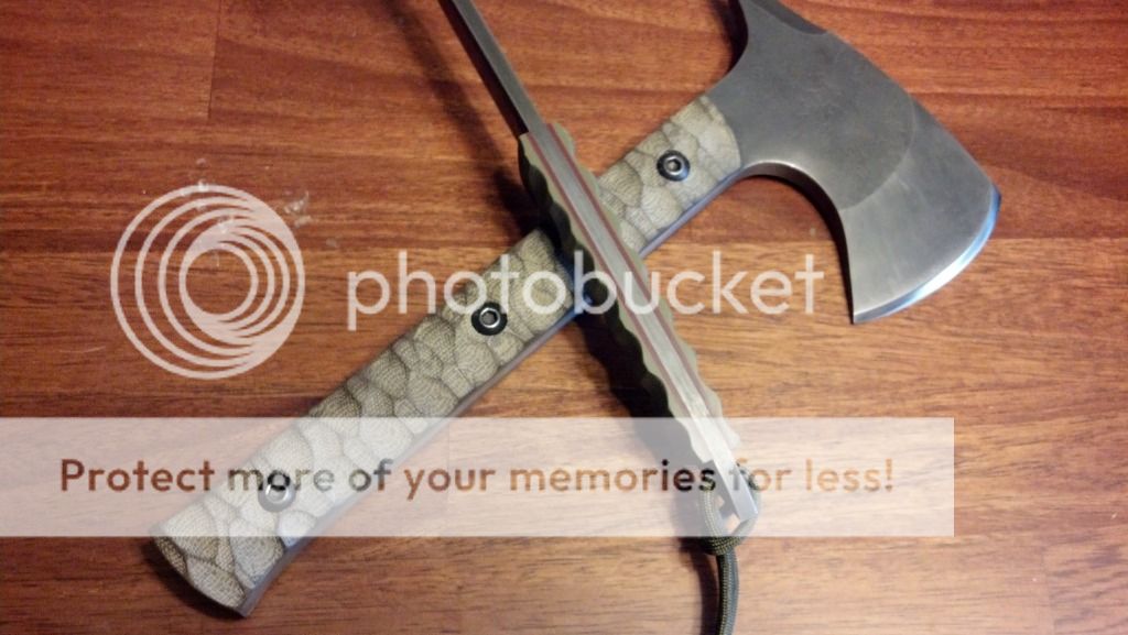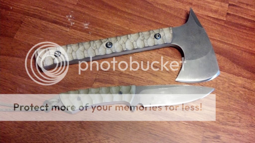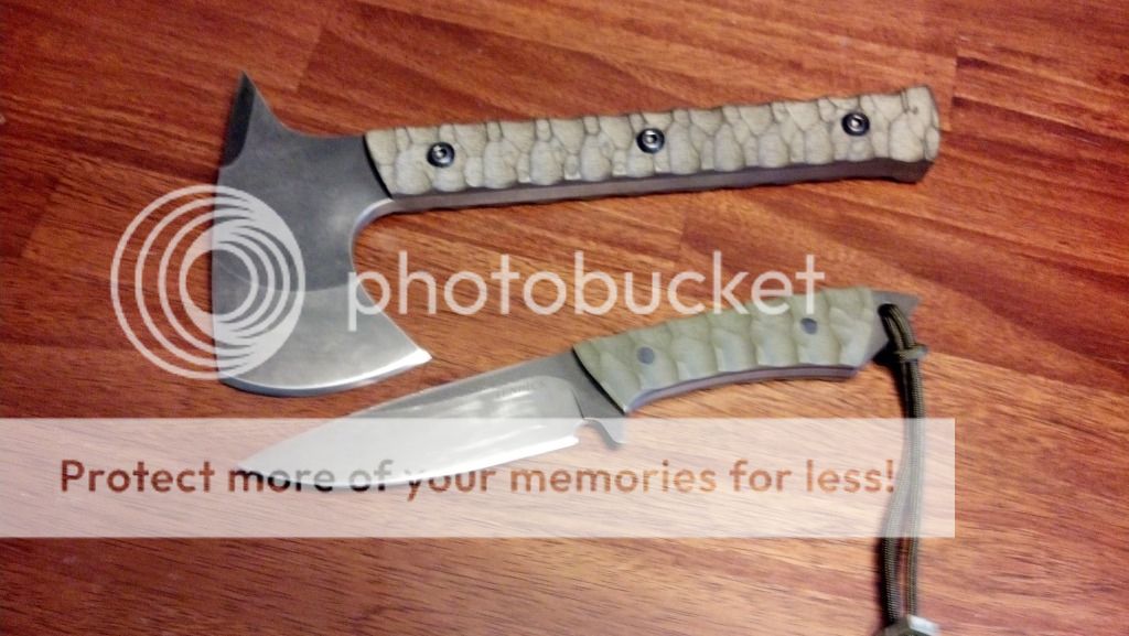 I have for sale a hawk and knife combo from Ben Tendick at BRT Bladeworks. These are both used and sharpened, but still in great shape and will serve someone well. These are both still used and carried by me, but I am looking to switch it up a bit and try something else. I would like to sell these together, but may split them up for the right offer. The only trades that I am looking for would be a RMJ Tactical Shrike, any version of a Shrike, or possibly a Jenny Wren or Bussekin tomahawk. I can add cash if needed. These will ship USPS priority with insurance CONUS only. Payment can be made via paypal gift or add 3%. I am asking $520 shipped OBO. Brand new this set would sell for $700. SOLD.