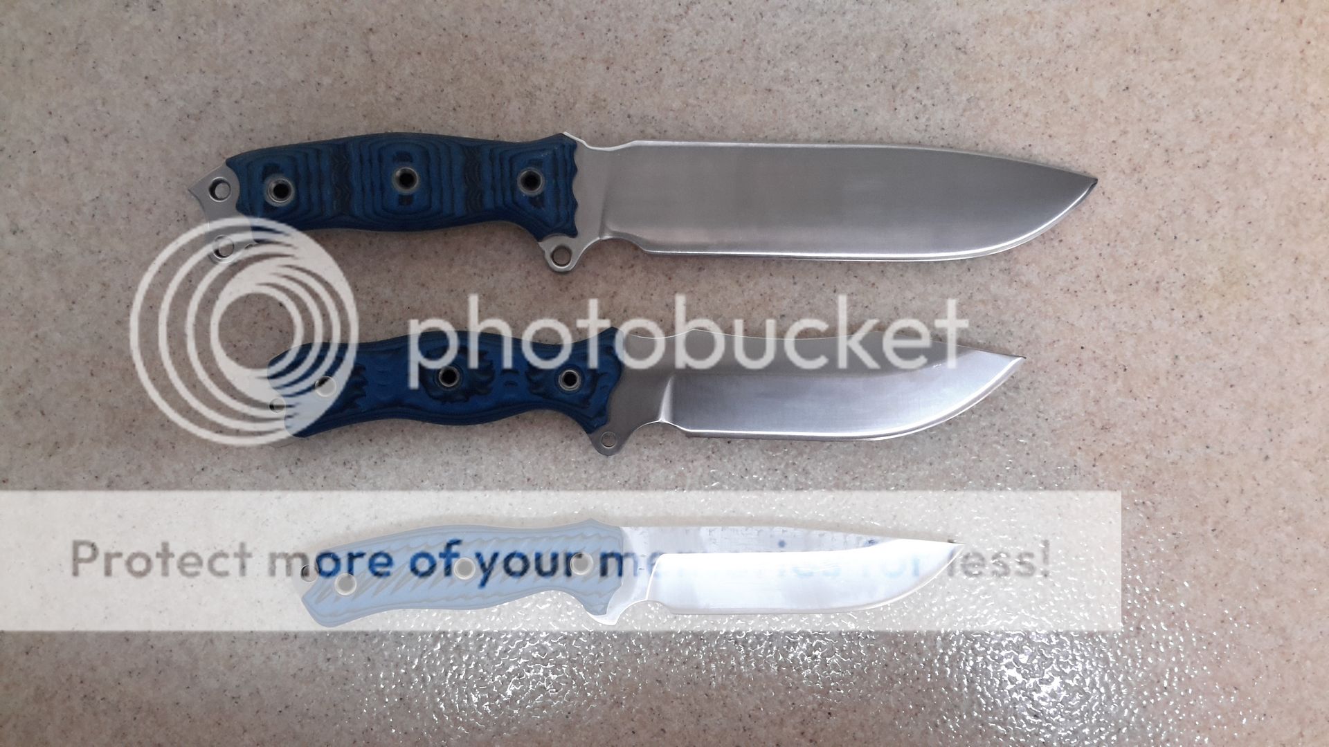 I have a Satin Tankbuster and INFI-Du, both with bruiser (black and blue) scales for sale. Unfortunately for me, my family's health comes first so these are forced to be sold. I am not taking any trades at this time. I ordered the Tankbuster direct from Busse awhile back and the INFI-Du originally came from Blade '14. Both have been stored in their cardboard sheaths, they are in unused, new condition. If you have any questions please feel free to pm me. I am asking $325 now $315 for the INFI-Du and $sold for the Tankbuster, both net to me prices. Shipping/insurance is included. The NMSFNO is not available.
