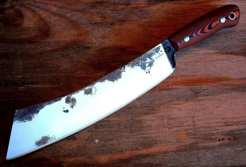 I just finished this one up and decided to snap a few photos before sending it off. It is about 15'' overall with a 10'' blade. The steel is 5160 and the handle material is orange/black G-10.